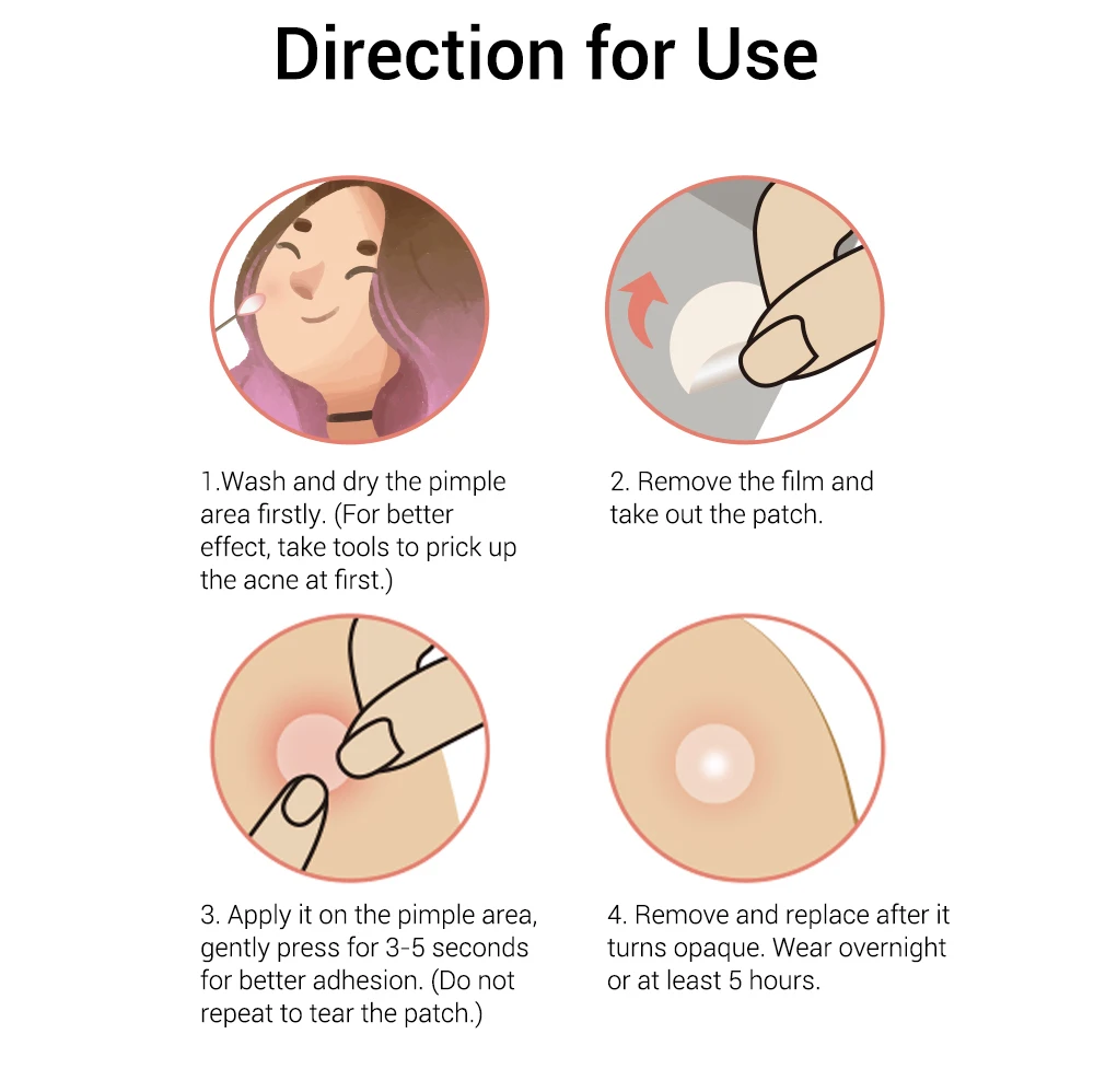 3. Нанесите его на область прыщей, аккуратно нажмите в течение 3-5 секунд для лучшей адгезии. (Не повторяйте, чтобы оторвать пластырь.)