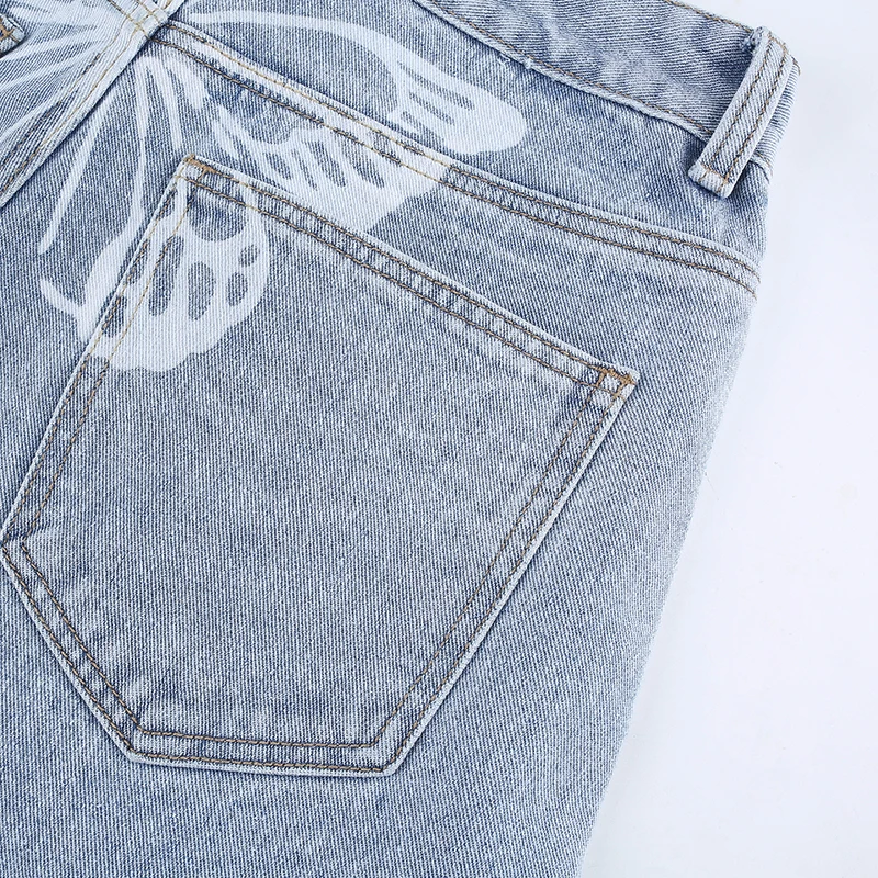 Прямые джинсовые брюки Harajuku с принтом бабочки, женские свободны...