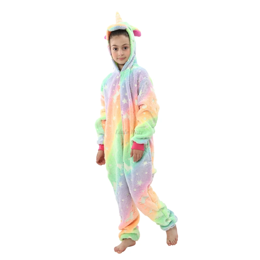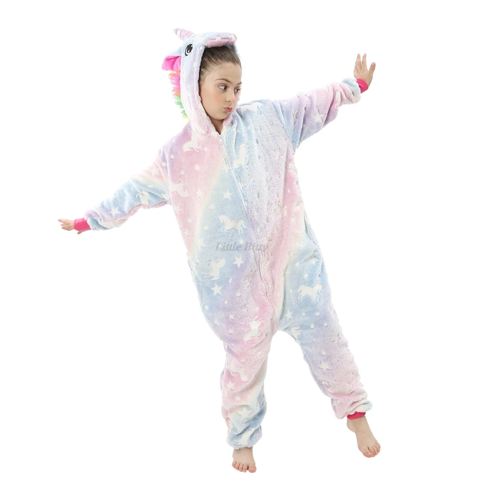 Пижама-Кигуруми для девочек-подростков, пижама с единорогом, Пижама-комбинезон, детская пижама в виде единорога, пижама с капюшоном