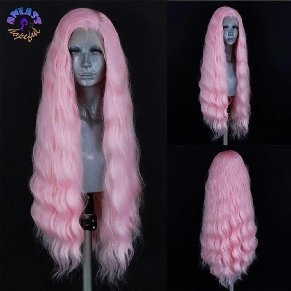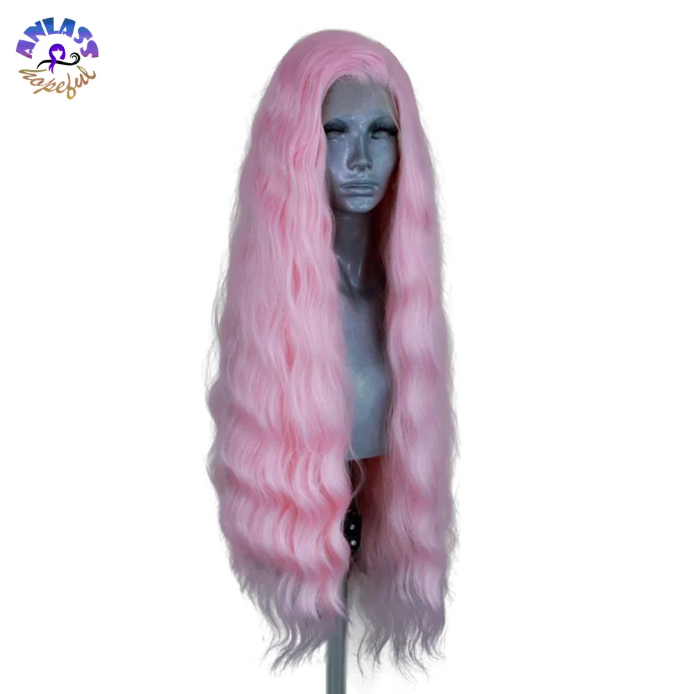 Парик розового цвета с длинными волнистыми волосами, парик с синтетическими кружевами спереди, к бесклеевым передним кружевным парикам для женщин, искусственные волосы