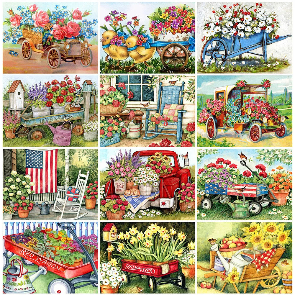 EverShine DIY Алмазная картина полностью квадратный цветок 5D алмазная вышивка тележка мозаика Стразы ручная работа хобби