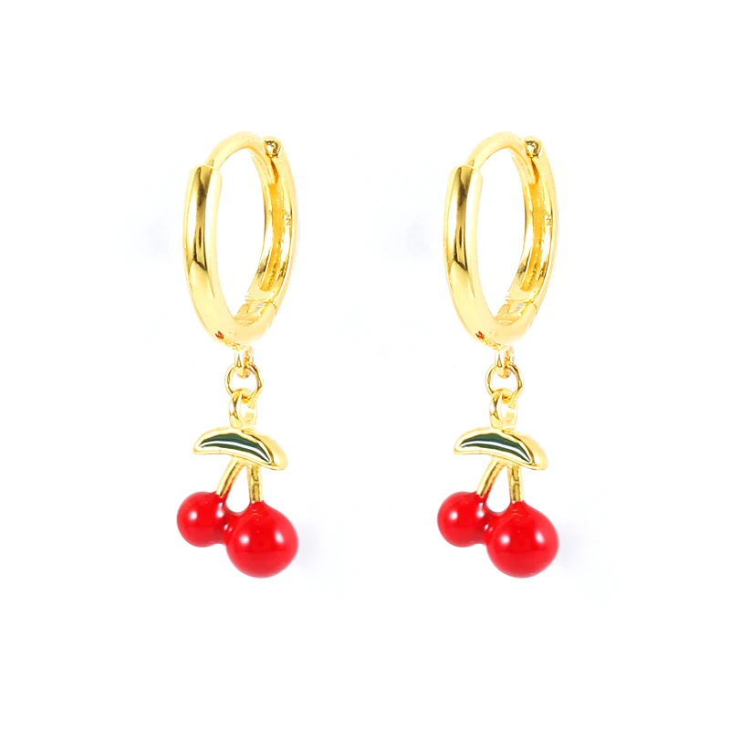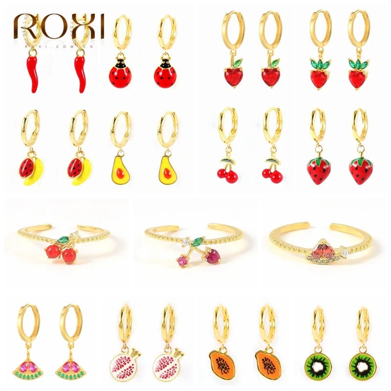 ROXI с милым фруктовым серьги-кольца, покрытые эмалью для женские летние сандалии для девушек, на плоской подошве, ювелирные изделия, серьги, 925 стерлингового серебра насекомых серьги красочные