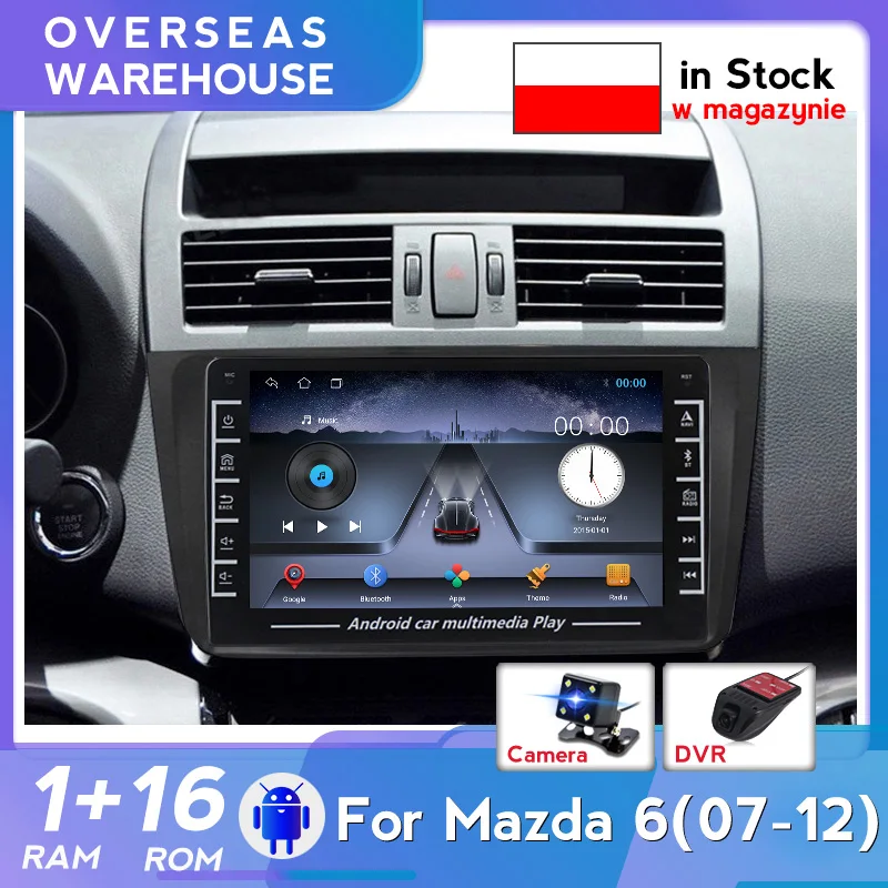 Автомобильный радиоприемник 8 дюймов, Android, стерео, мультимедийный плеер для Mazda 6 GH 2007-2012, GPS-навигация, IPS экран, Авторадио, Wi-Fi, 1 ГБ ОЗУ, 16 Гб ПЗУ