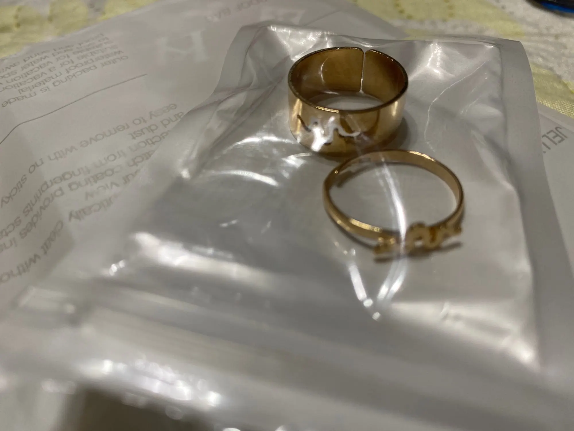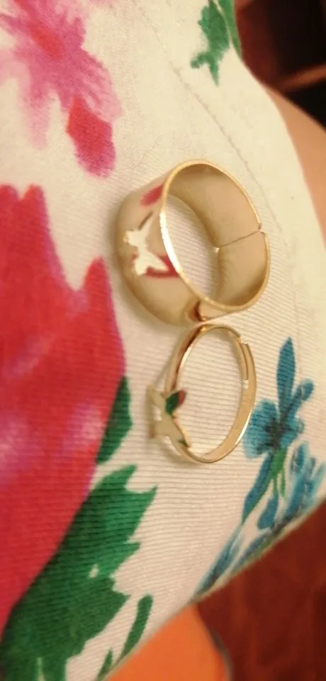 Кільця непогані, дійсно прийшло 2. За таку ціну чудово, але метелик у отвір не влазить. Золотий перстень прийшов сплавлений – не можна регулювати, але зв'язалась з продавцем та він погодився надіслати таку ж пару повторно за 0,1$ Тому 5 зірок inst @_gava_shop