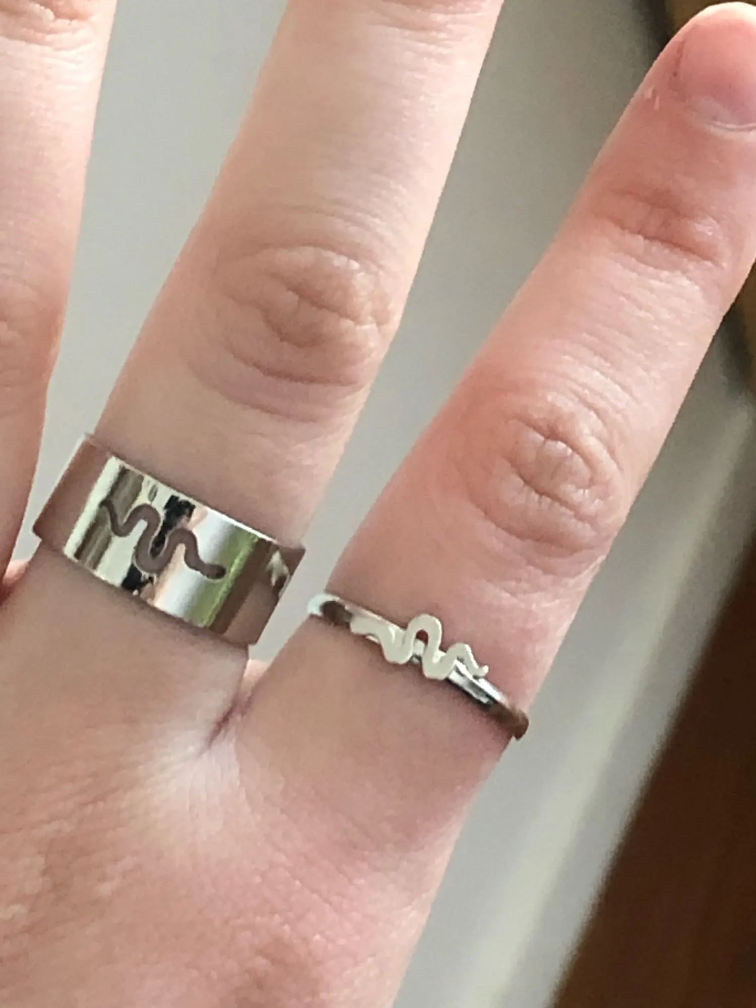 Кольца хорошие, только вот тот который поменьше мне не очень понравился, а вот сестрее она явно по нраву. Сами кольца хорошие и рисунок и качество. Заказывайте не пожалеете P. S кольца побольше я уже успела потерять, не прошло даже и 3 часов как я забрала их с почты. Вот так вот