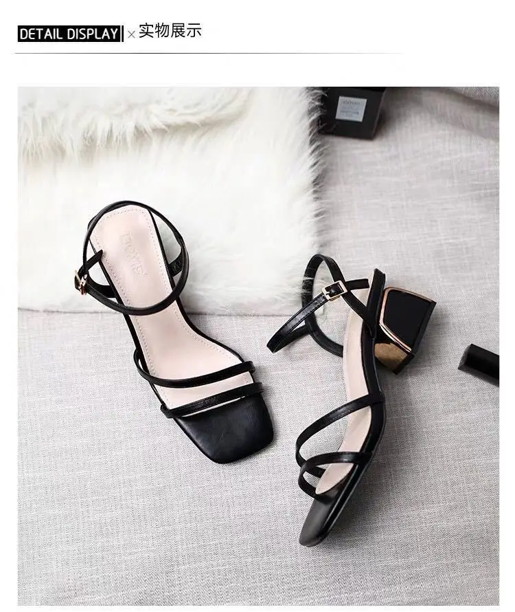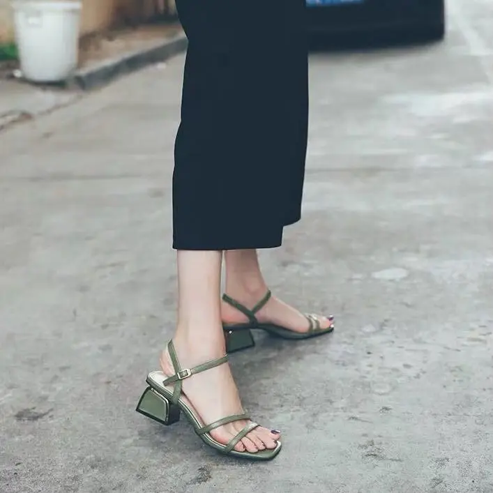 Сандалии на толстом каблуке, женские босоножки в сказочном стиле, Новинка лета 2021, женская обувь на среднем каблуке, универсальные туфли на высоком каблуке в римском стиле