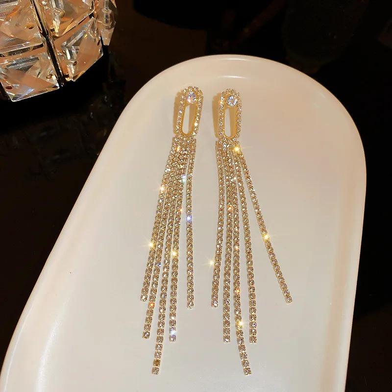 FYUAN геометрические серьги, полностью из стразов для женщин бижутерия длинные кисточки кристаллы висячие серьги эффектные украшения