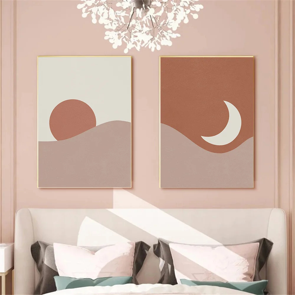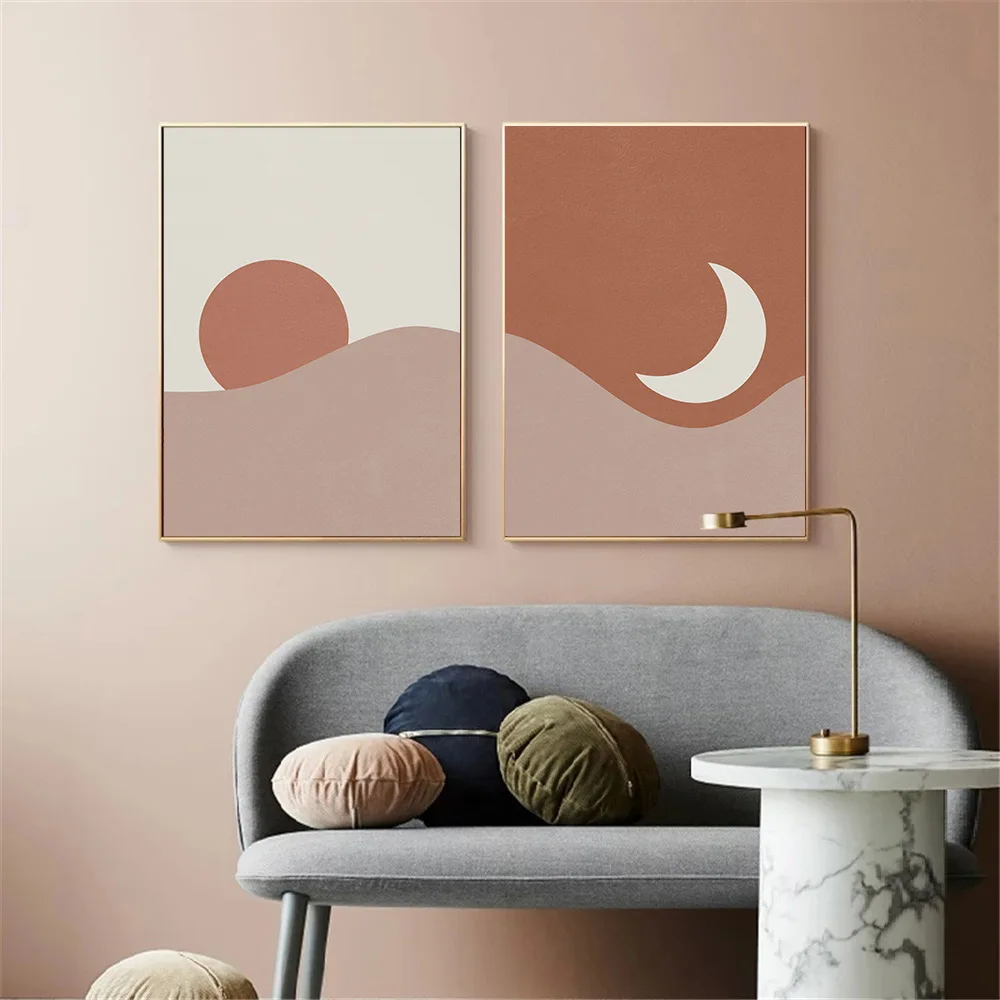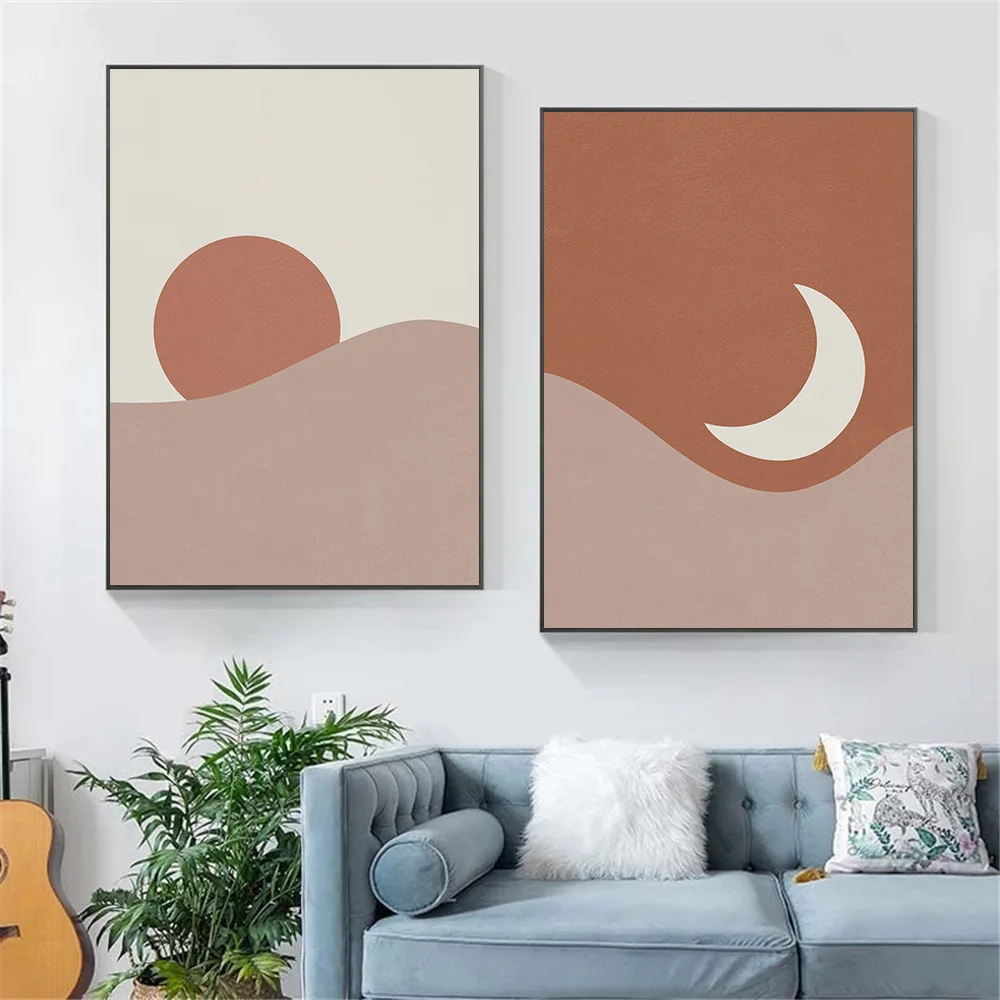Абстрактный настенный плакат с изображением Солнца и Луны, пейзажа, пейзажа, пейзаж, пейзаж в стиле бохо, живопись на холсте, Минималистичная Художественная печать, современная картина, декор для гостиной