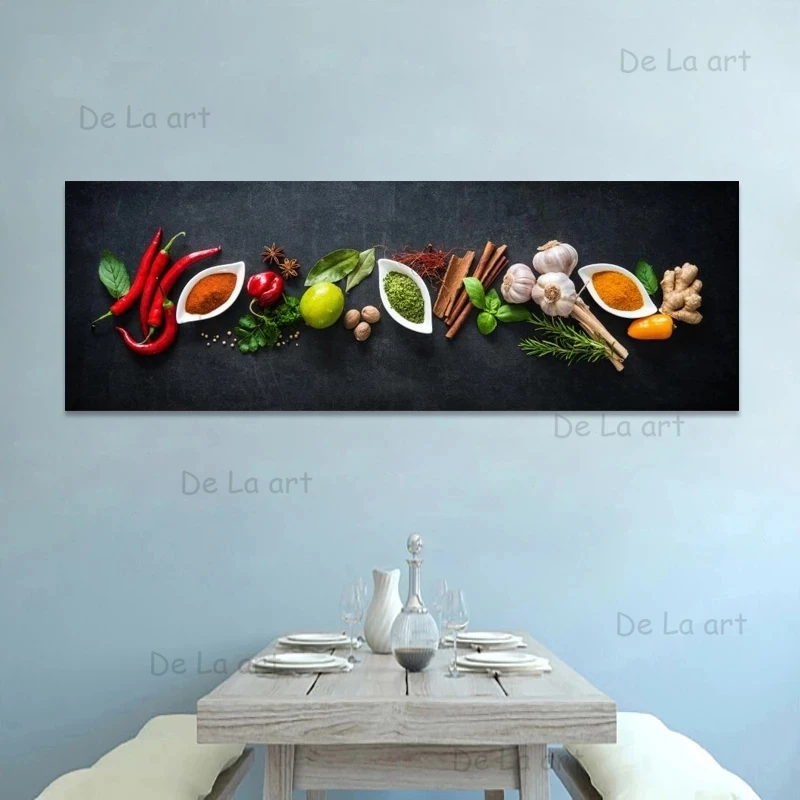Настенная картина в кухонном стиле, постеры для овощей и приправ на стол, картины на холсте, продукты для готовки, ингредиенты, холст
