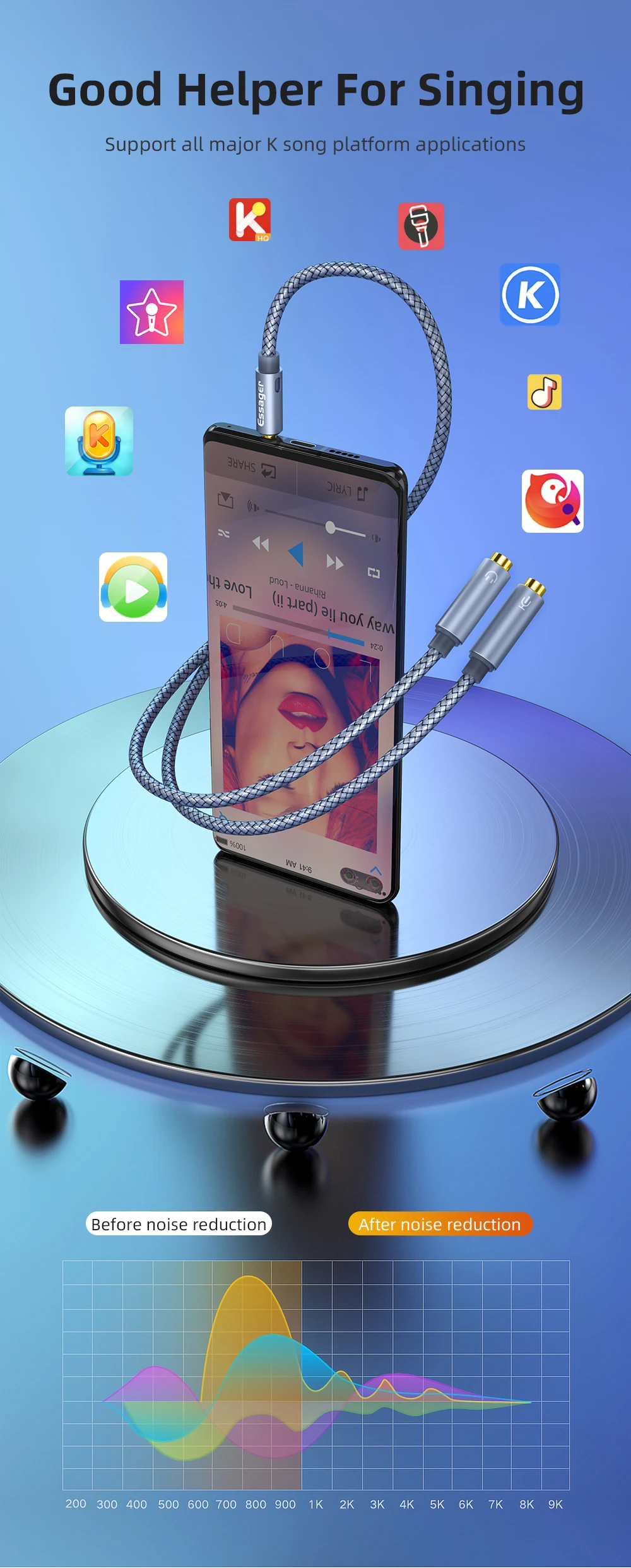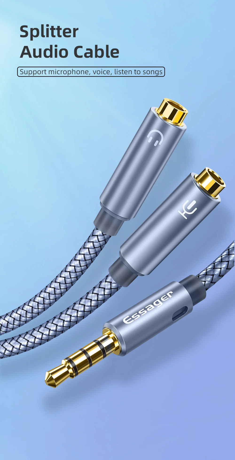 Кабель Essager Audio сплиттер для наушников, удлинитель для микрофо...