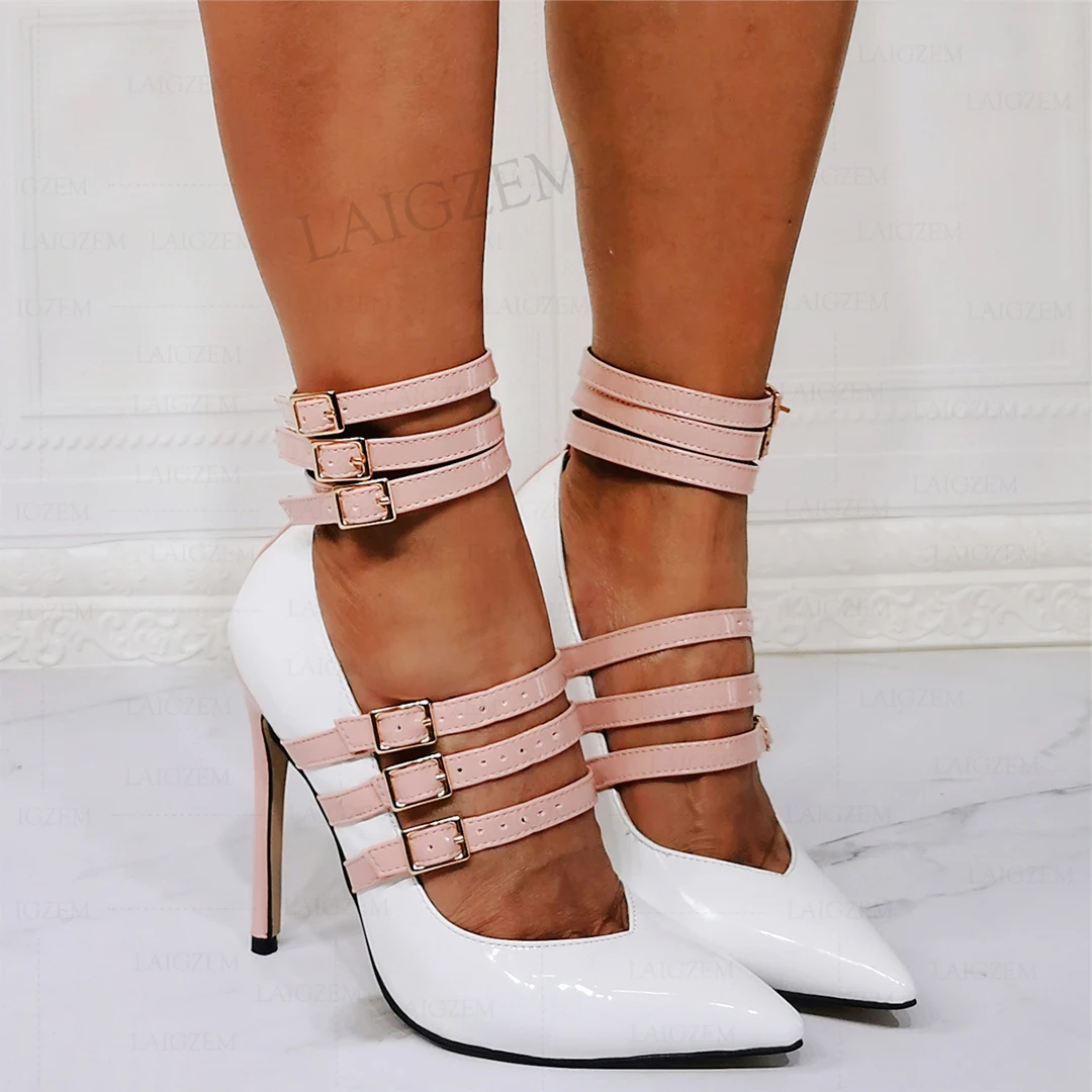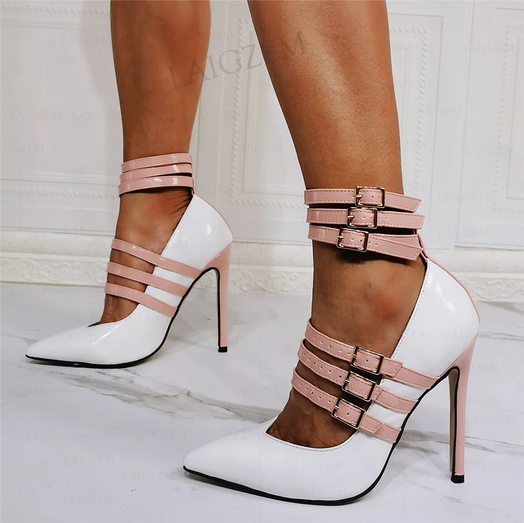 BERZIMER/женские туфли-лодочки на высоком каблуке с острым носком и пряжкой на ремешке; Босоножки в стиле пэчворк; Tacones Altos; Вечерние туфли; Женская обувь; Размеры 41, 45, 47