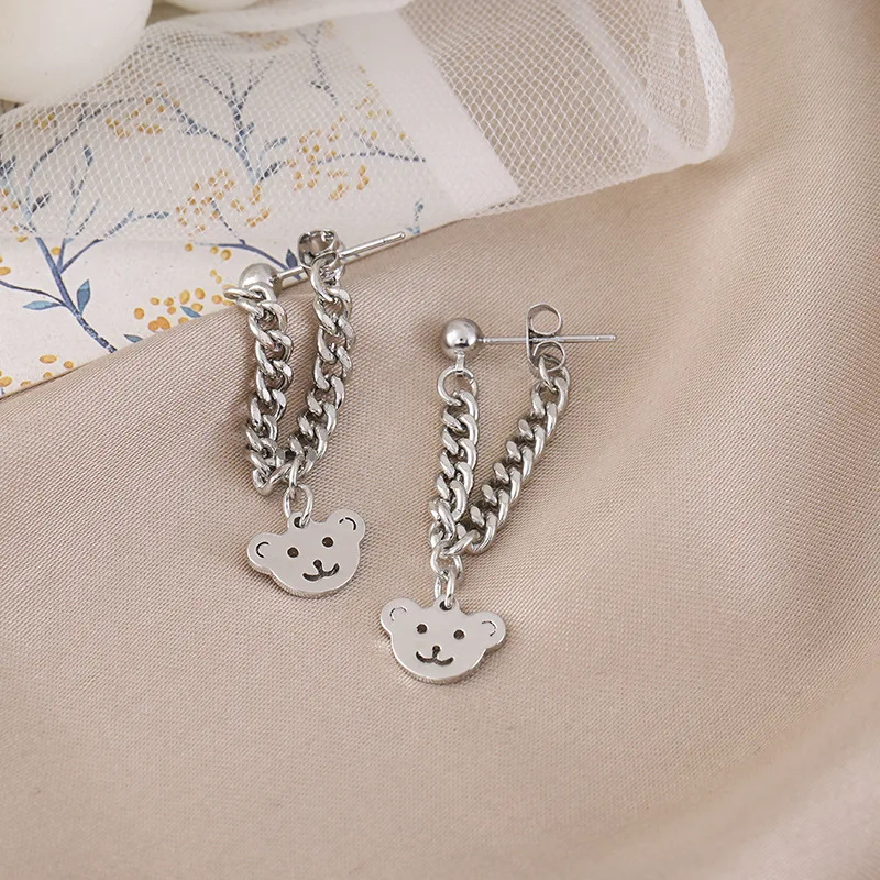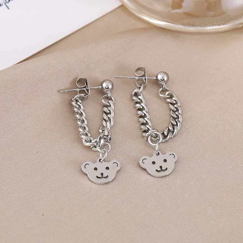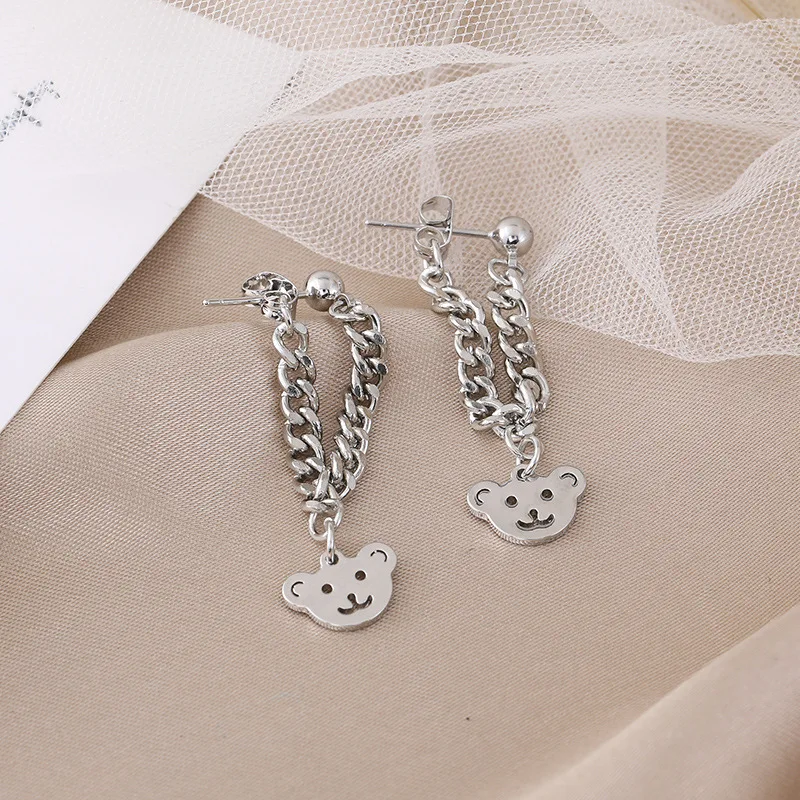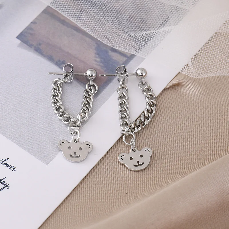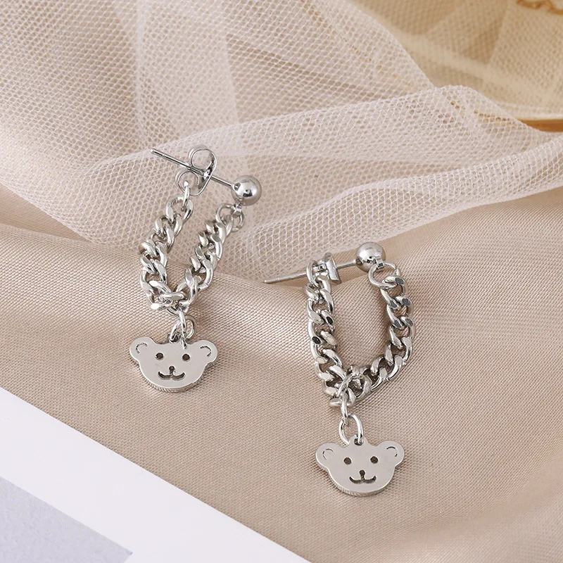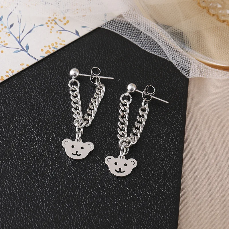 Серьги женские, корейские, с цепочкой, эффектные, серьги в виде медведя