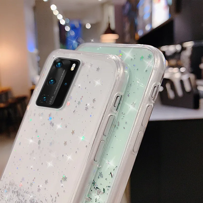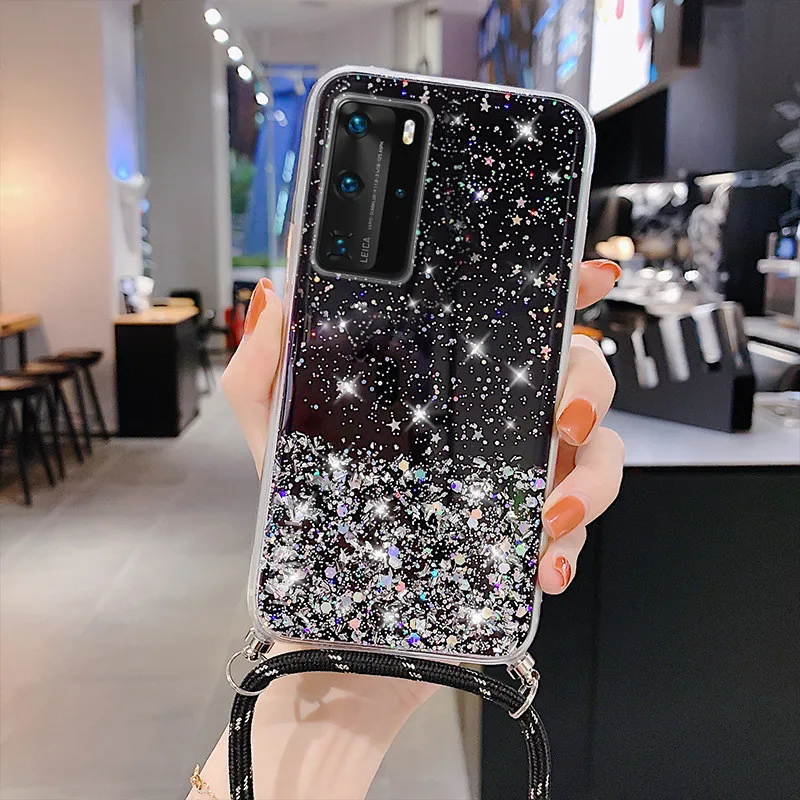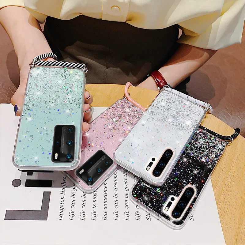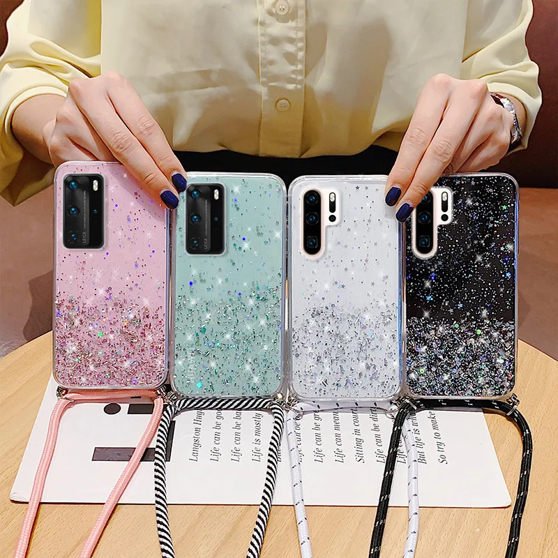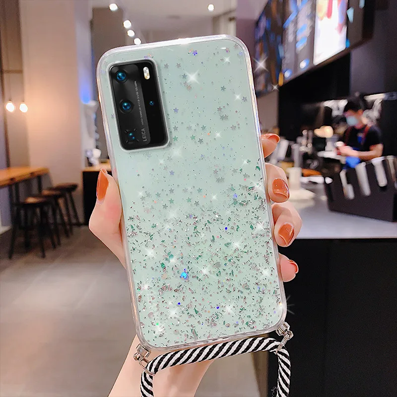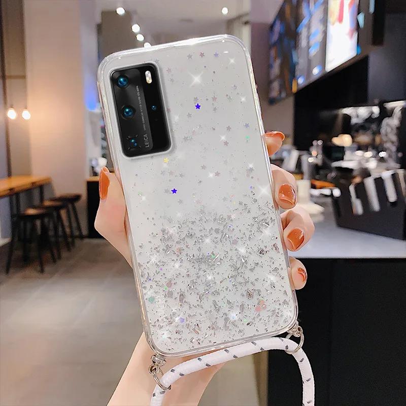 Прозрачный блестящий чехол с ремешком на шею для Huawei P40 Pro P30...