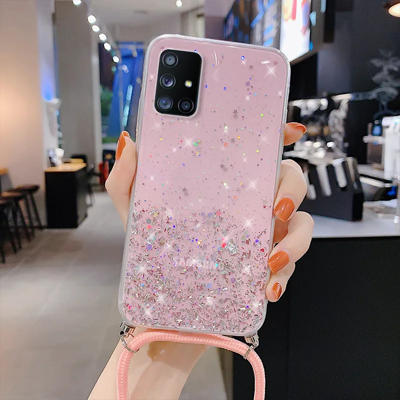 Прозрачный блестящий чехол с ремешком на шею для Samsung Galaxy A51...