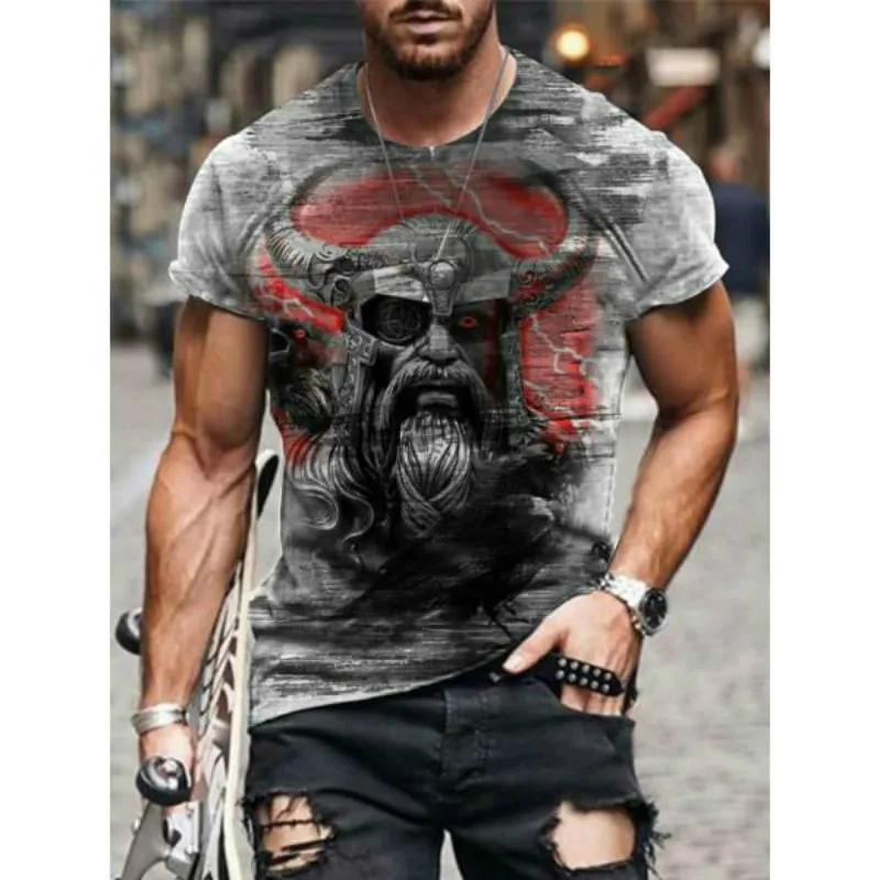 Мужская футболка с принтом викингов, черная Повседневная Свободная ...