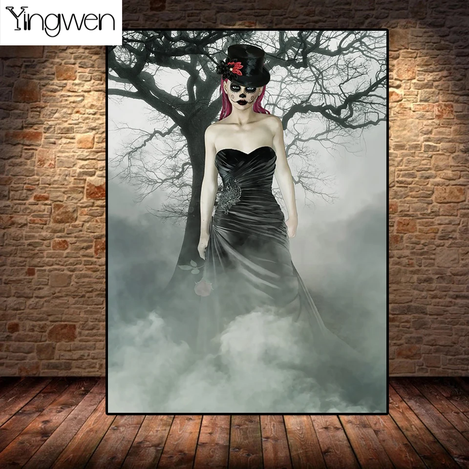 5D DIY Алмазная картина готическое дерево темное девушка полная квадратная круглая дрель Алмазная вышивка череп Женский Декор для дома ручной работы подарок