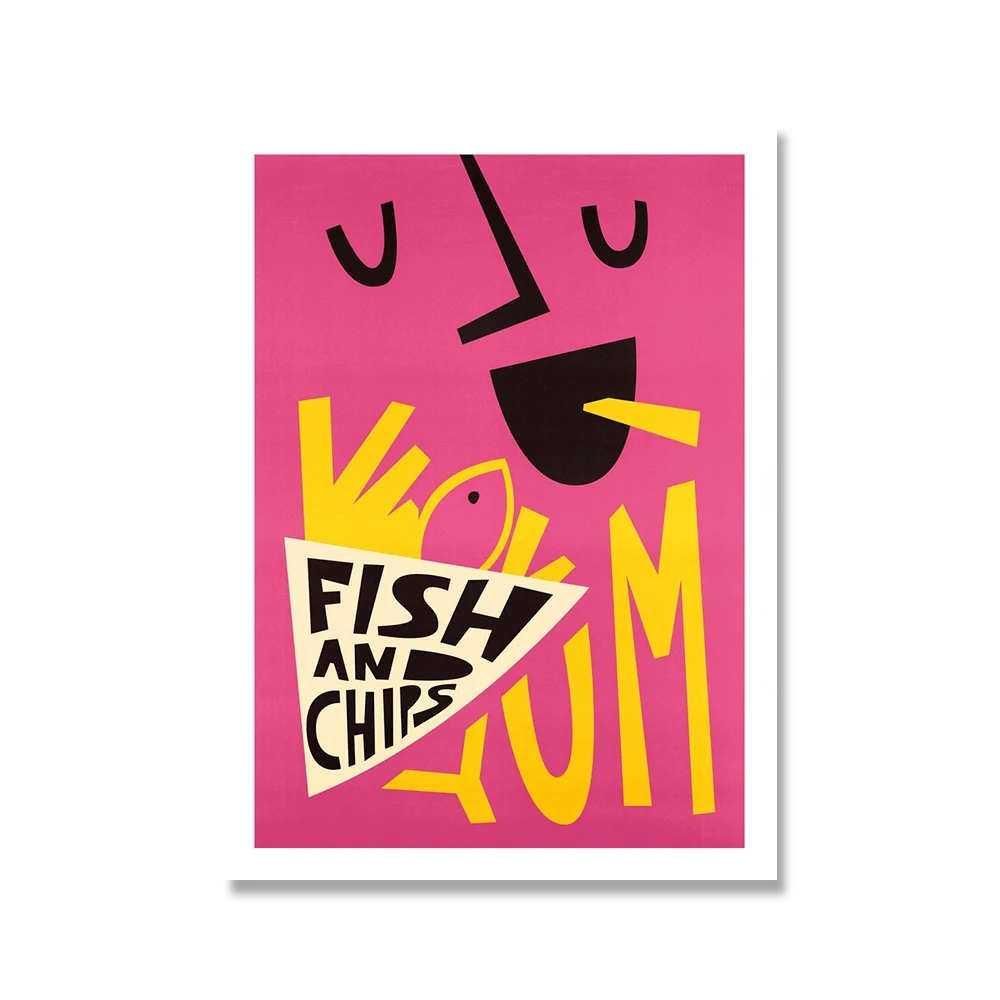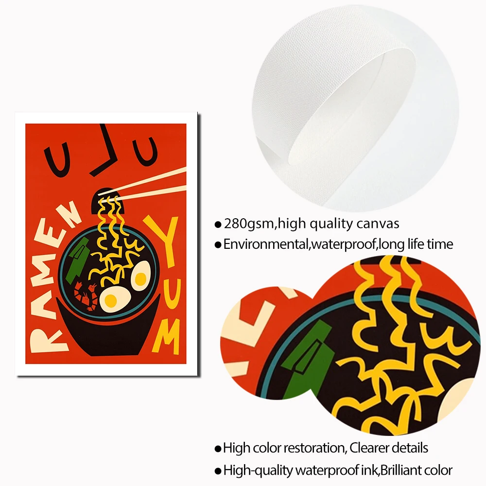 Забавные мультяшные постеры с едой и рамен, печать с рисунком Ням, кофе, рыбок и чипсов, Картина на холсте в клубе, баре, магазине, фотографии