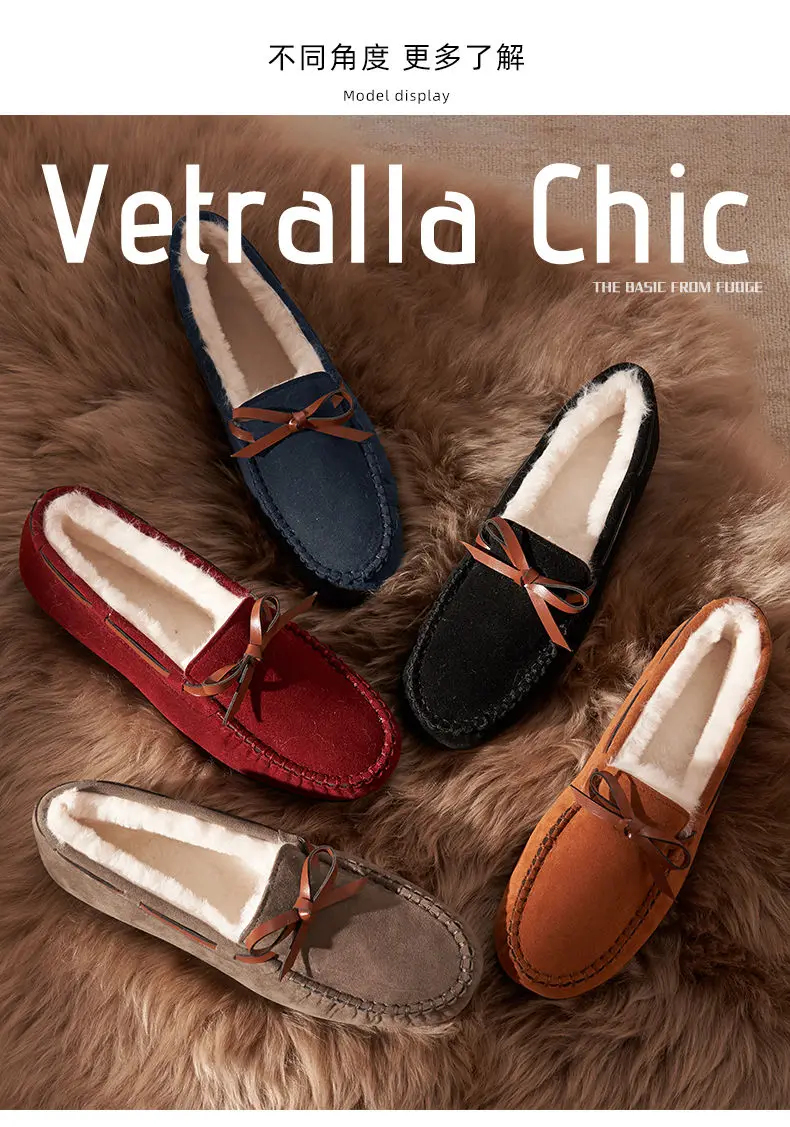 Женская Теплая обувь из флока, повседневные лоферы на плоской подош...