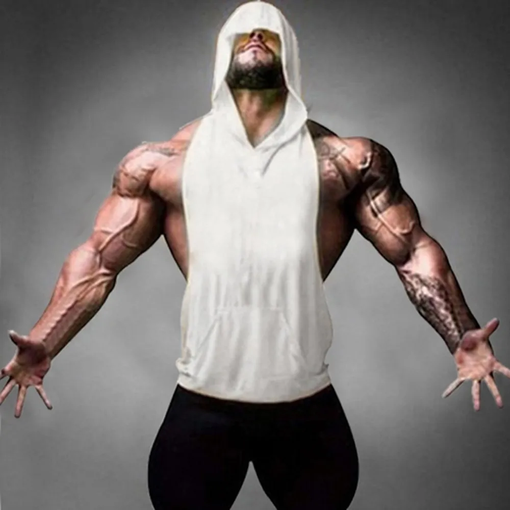 * Описание товара: мужской повседневный спортивный жилет с капюшоном, топы, свитшот, спортивный костюм без рукавов размера плюс