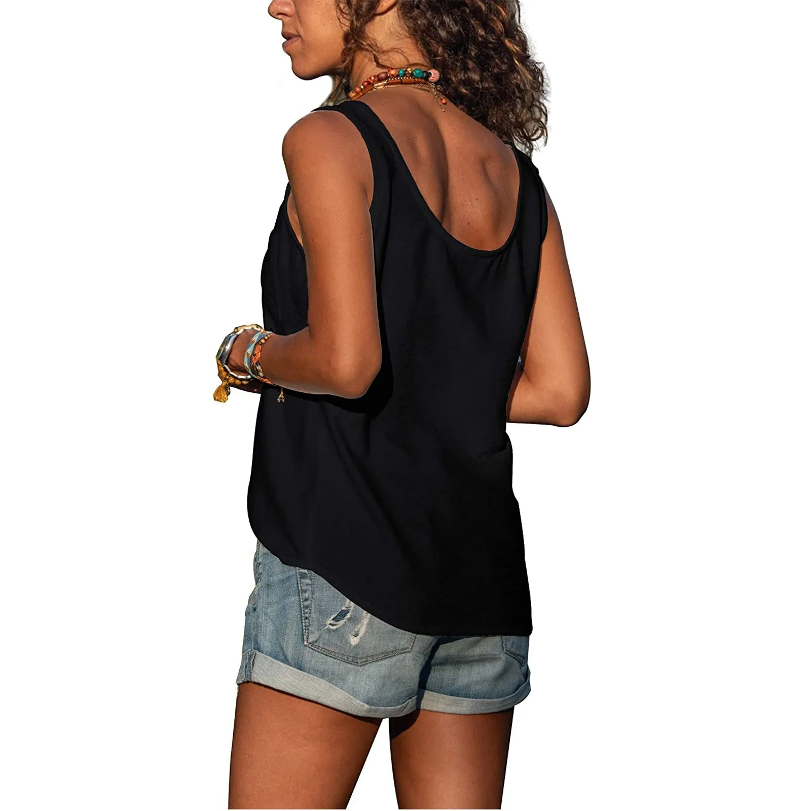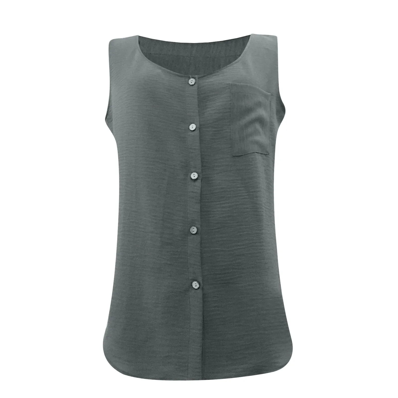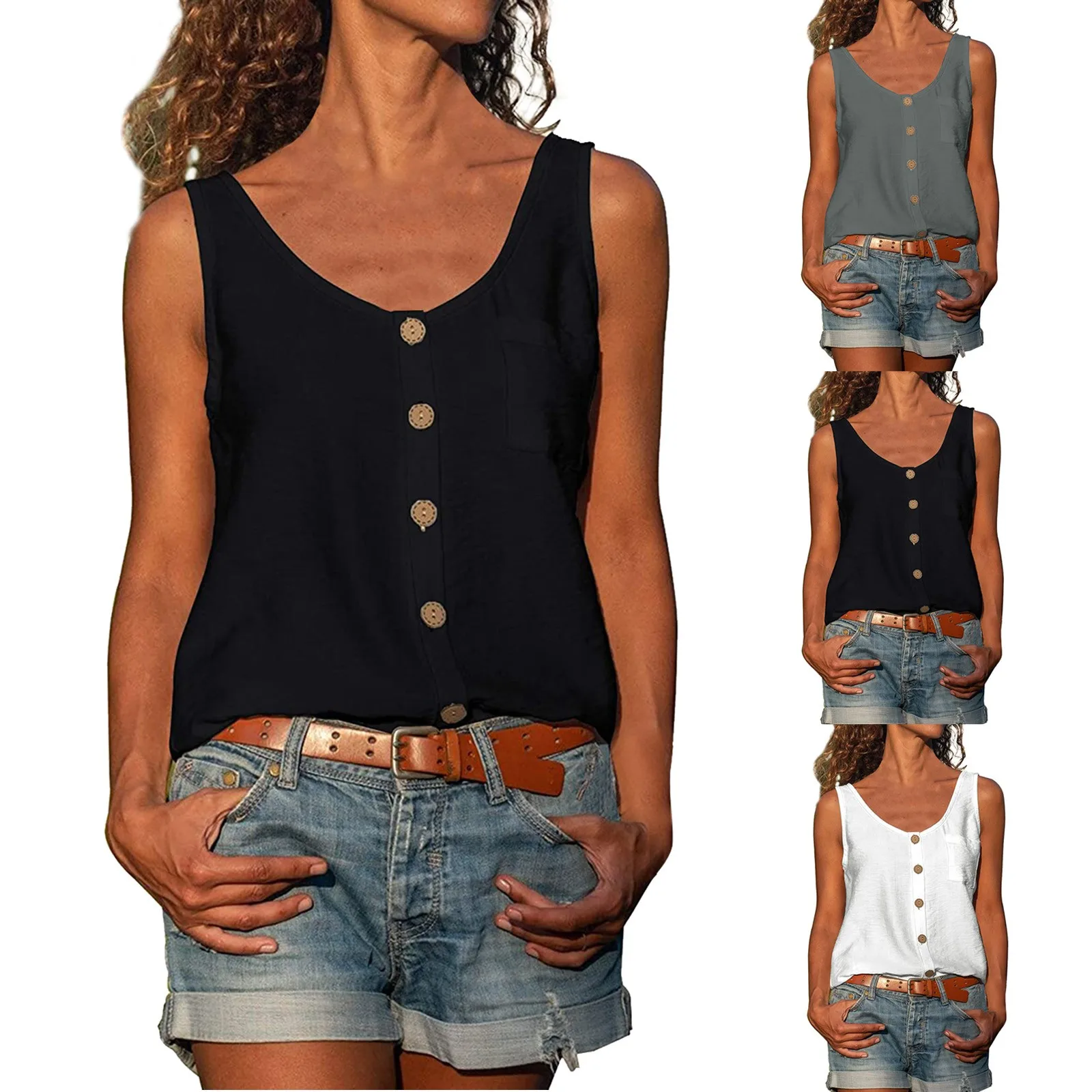 Женские топы на пуговицах с глубоким вырезом без рукавов, футболки, блузки с свободным карманом