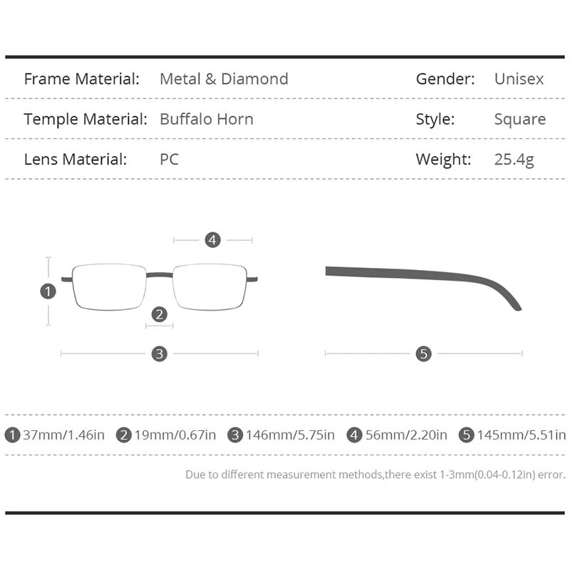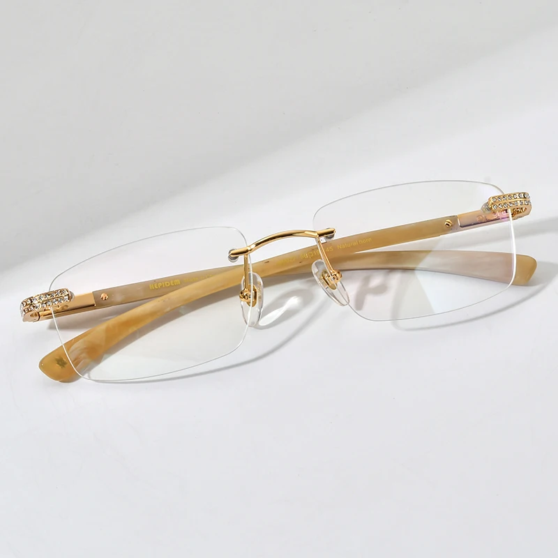 HEPIDEM Очки мужские из буйвола, новинка 2021, роскошные квадратные очки с бриллиантами, роскошные очки без оправы, 0022