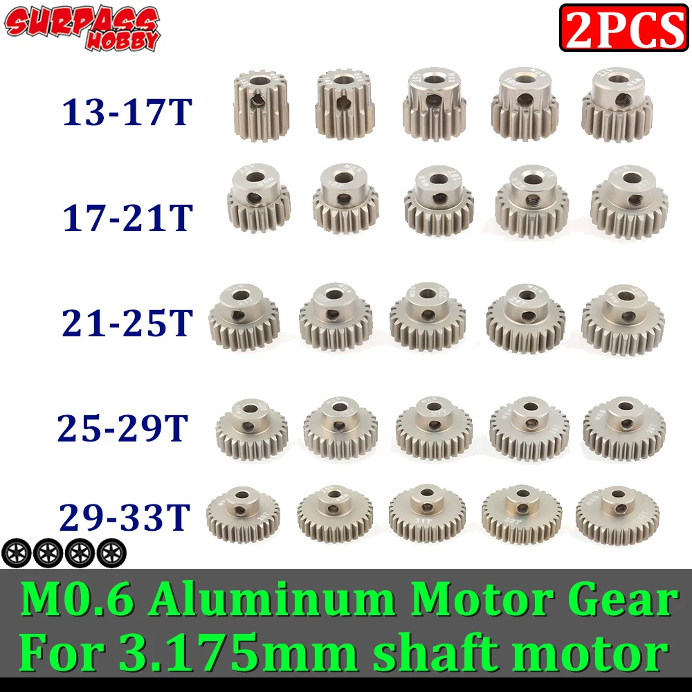 Surpass Hobby 2 шт. M0.6 металлические моторные шестерни 3,175 мм вал моторы шестерни Алюминий бесщеточный мотор матовый 110 Rc автомобиль до 13 ти лет-33T
