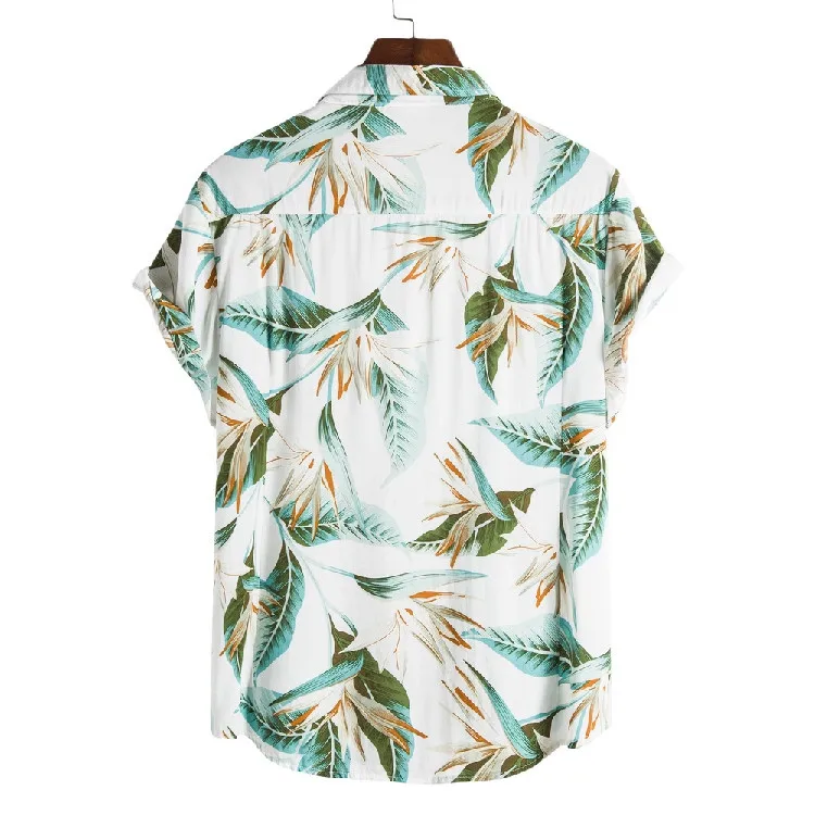 Мужская рубашка с принтом зеленых листьев, повседневный Свободный кардиган, гавайская рубашка с короткими рукавами, одежда для отпуска
