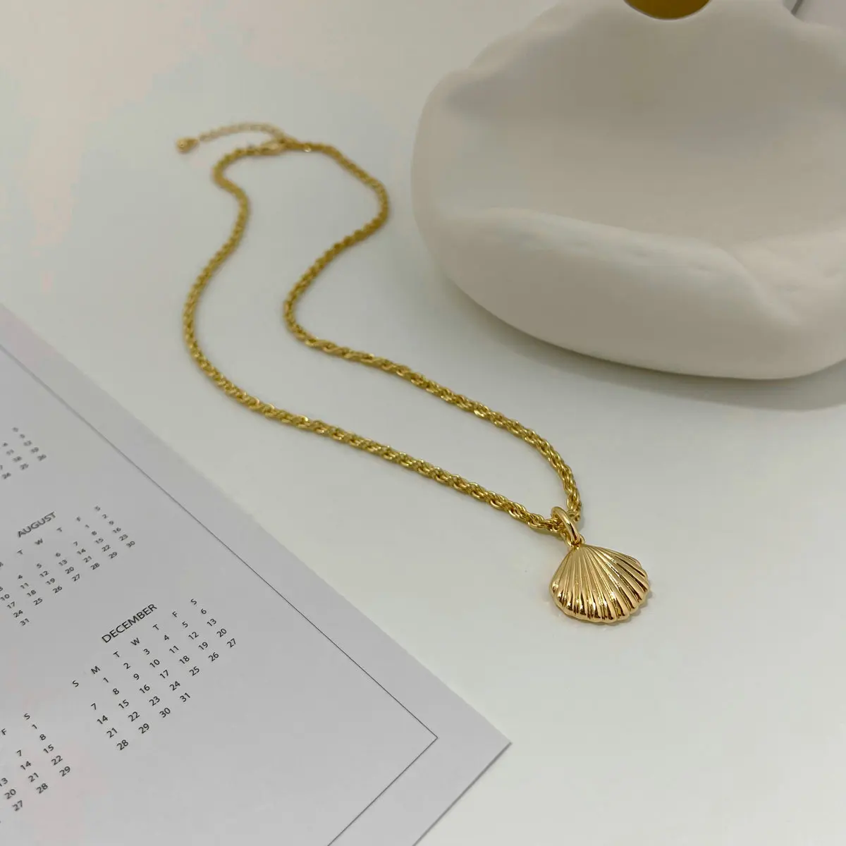 Ожерелье с металлической текстурой, золотое ожерелье для женщин, подвеска в виде ракушки, летняя фестонка, белый жемчуг, многослойная цепочка, ювелирные изделия, оптовая продажа