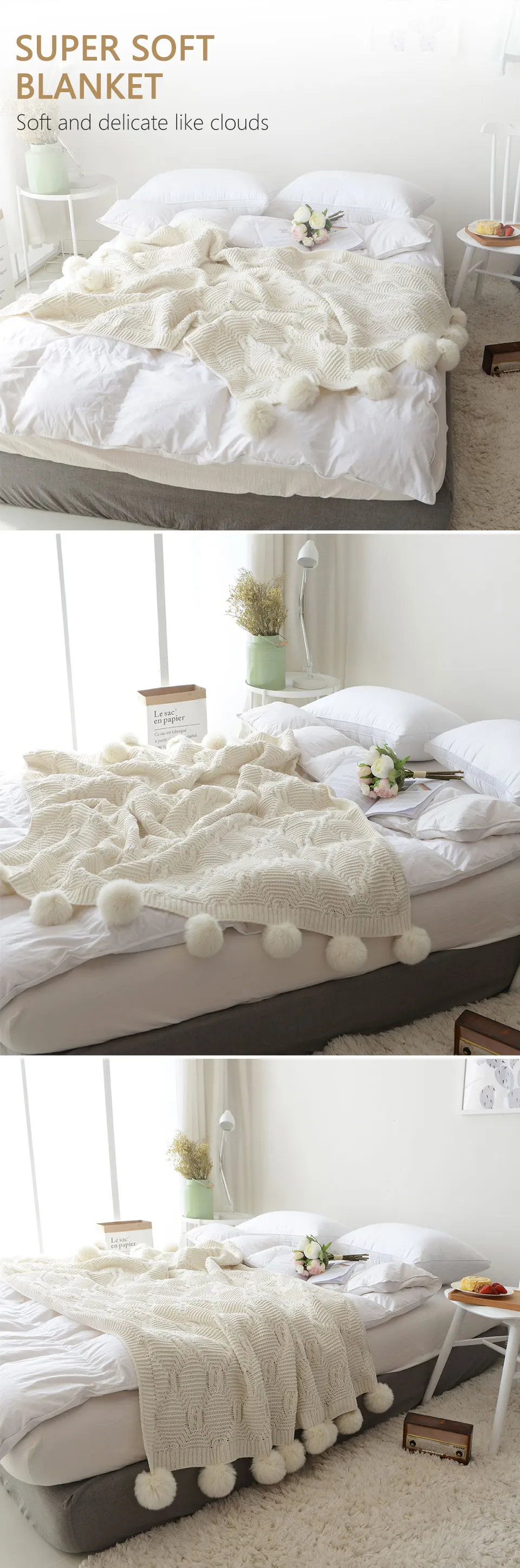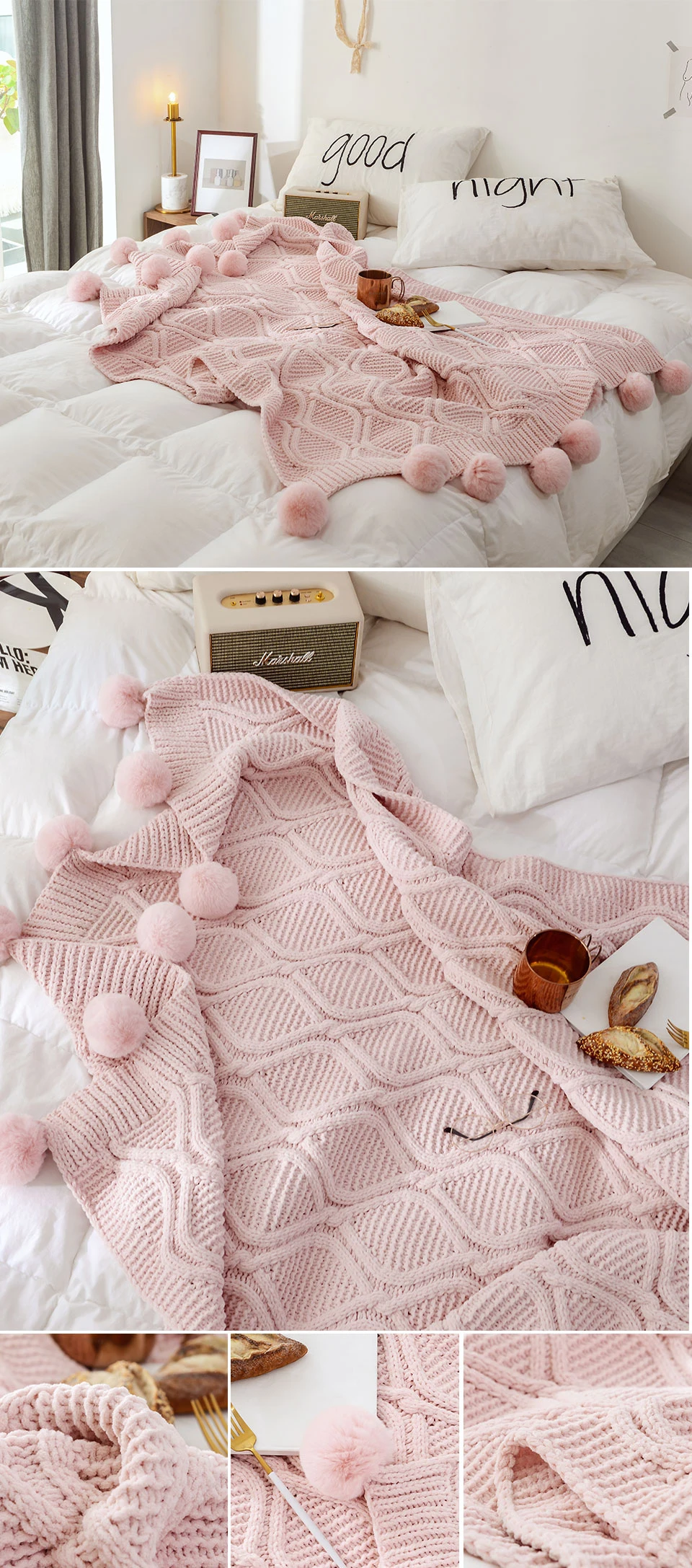 Мягкое одеяло, шикарное вязаное одеяло с шариками, шенилл, вязаное ...