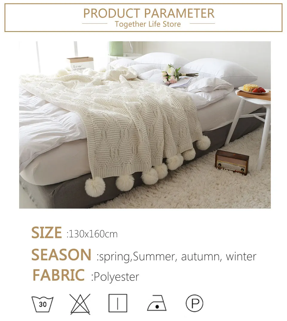 Особенности:Практичное и многофункциональное, это может быть одеяло для отдыха, одеяло для путешествий, одеяло для сна, также может использоваться как одеяло для дивана, декоративное одеяло. Волокно очень мягкое и высокое качество, принесет вам тепло в холодные дни, и пушистый шар делает его более милым.