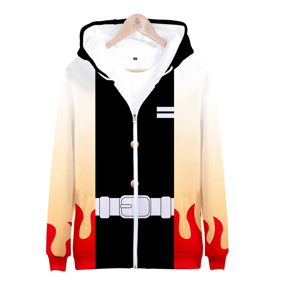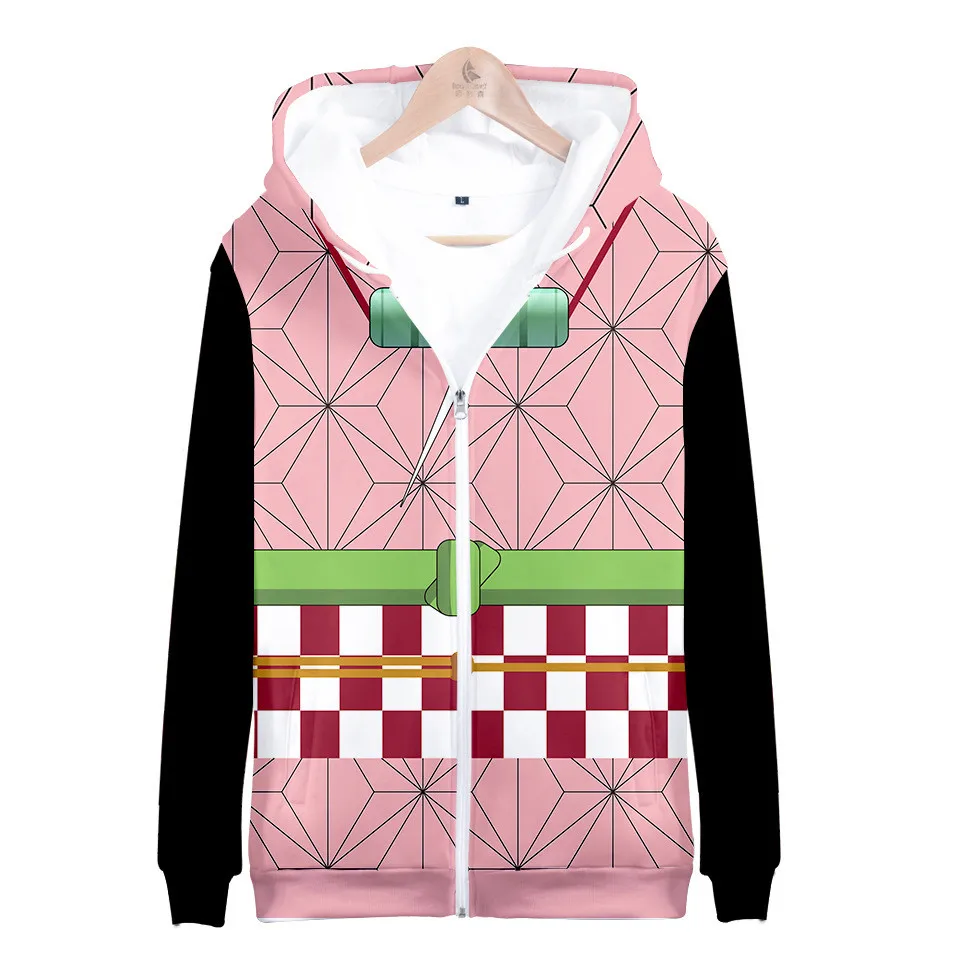 Толстовка для косплея из аниме рассекающий демонов, худи Kamado Tanjiro Zenitsu с 3D принтом, на молнии, свитшоты с капюшоном, пальто, куртка