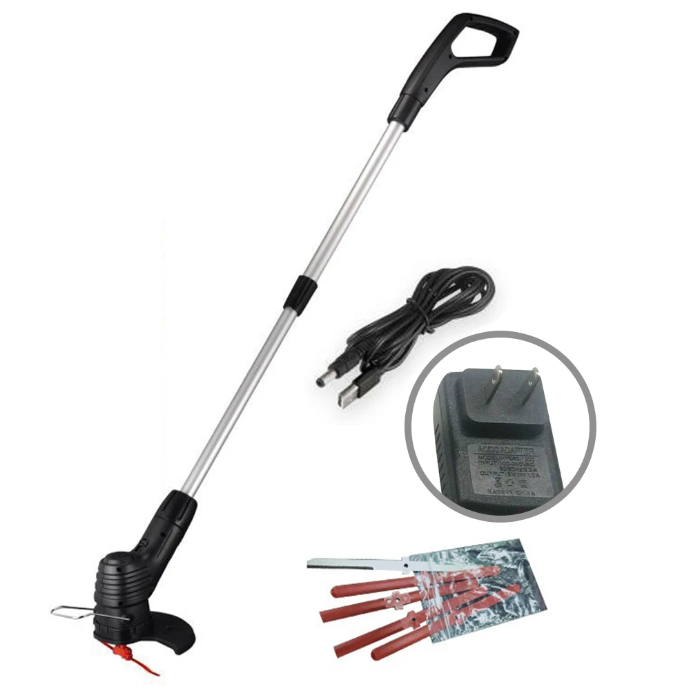 Многофункциональный перезаряжаемый электрический триммер с лезвиями, беспроводные бытовые садовые инструменты, садовые ножницы, садовые ножницы, садовая газонокосилка, триммер для травыХарактеристика:Электрическая прополка литиевой батареи: Зарядка литиевой батареи, эффективный Срок службы батареи. Встроенный аккумулятор 2000 мАч, может работать непрерывно в течение 3-4 часов, прощайтесь с запуском проводов.Портативный Телескопический столб: может удовлетворить требования различных высот (столб может быть телескопическим 1-30 см), не нужно сгибаться, чтобы Косить газон, легко зафиксировать высокий забор!Быстро Режьте траву, не повреждая лужайку: при садоводстве и лужайке скашивая веревка из нейлона может защитить стволы деревьев и цветы от вреда во время резки травы. Сорняки вокруг цветов на багажнике легко чистить!С защитным покрытием: эффективно предотвращает сорняки от брызг при просорке.Широкий спектр применения: подходит для обрезки садов, пастырской травы, парков, вилл, небольших кустарников и т. д.Спецификация:Название продукта: электрическая Беспроводная литиевая батарея газонокосилкаМатериал: алюминиевая трубка/ABSВремя зарядки: 30 минут-2 часаЛитиевая батарея: аккумулятор 18650Напряжение: 3,7 V/2000mAhЧисло оборотов холостого хода: 4,5 V оборотов/1 минуту оборотов/13000 оборотовВремя работы без нагрузки: 3-4 часаМощность: 3 ВтТок: 700 мАУдлинение алюминиевой трубки: 1,05 метровНе удлиненный: 75 смПримечание:В связи с различиями мониторов и эффектами освещения реальный цвет товара может немного отличаться от цвета на фотографиях. Спасибо!Возможны отклонения в 1-2 см вследствие измерений вручную.