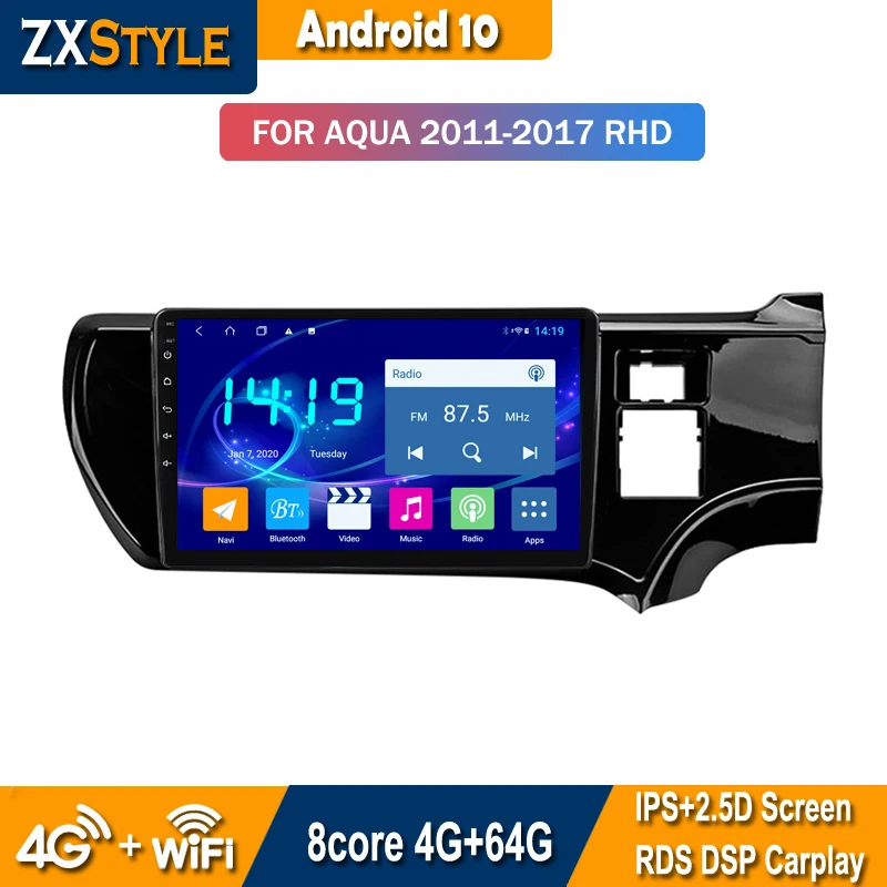 Автомагнитола для Toyota Aqua 2011-2017, радиоприемник, мультимедийный видеоплеер, навигация, стерео, GPS, Android 10, DVD