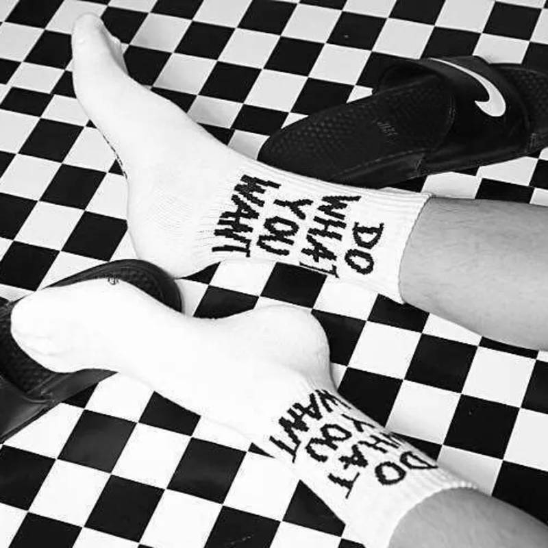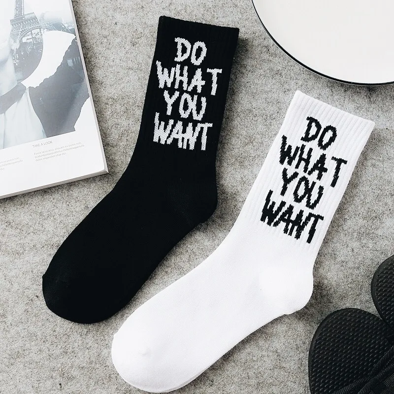 Футболка со смешным буквенным в Корейском стиле Halajuku хип-хоп уличные носки для скейтеров Колготки чулочно-носочные изделия для женщин высокое качество; Цвет черный, белый; Повседневные хлопковые короткие носки на зиму