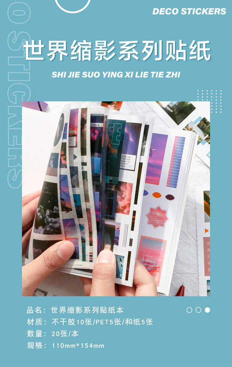 20 листов мира пейзаж PET Васи стикер книга Diy декоративный Дневник Журнал Скрапбукинг наклейка для планировщика стикер материал Канцтовары