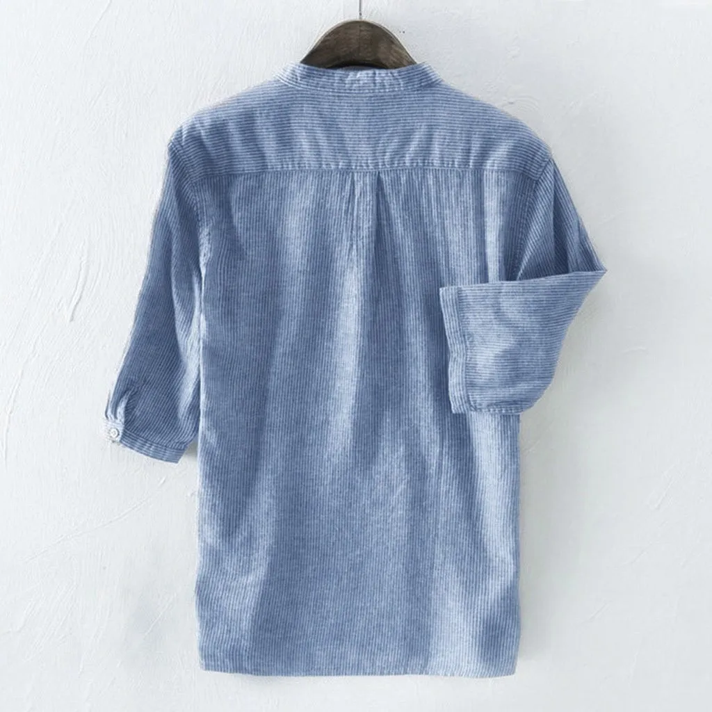 Блузка мужская из хлопка и льна, удобная рубашка с рукавами до локт...
