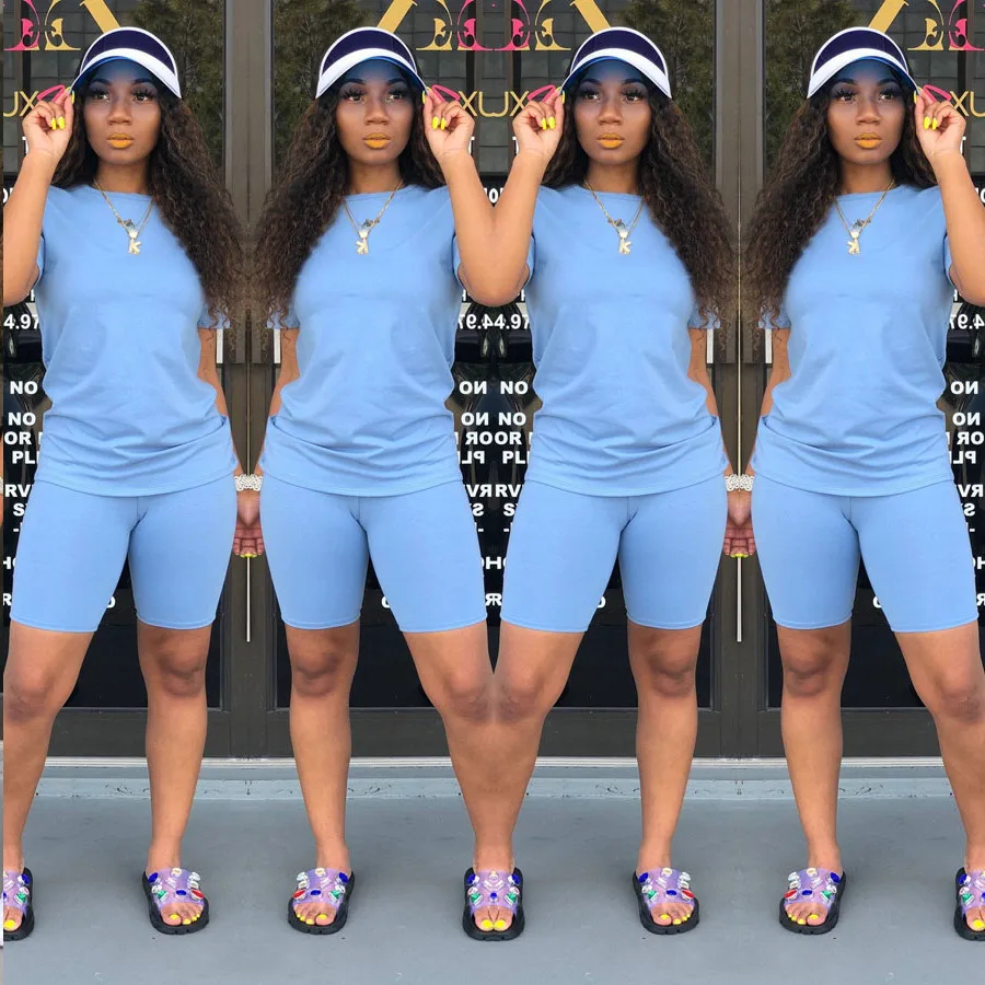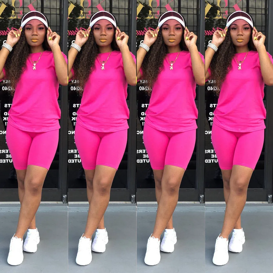 Твердые Цвет комплект из 2 частей женские короткий рукав Футболка + узкие мини обтягивающие летние женские шорты для бега спортивная одежда фитнес спортивный костюм S-2XL