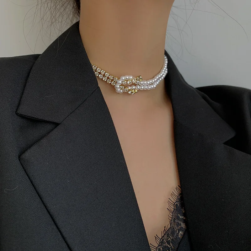 Европейский и американский темперамент жемчужный камень узел Сращивание чокер корейская мода ювелирные изделия женское сексуальное ожерелье для женщин подарок