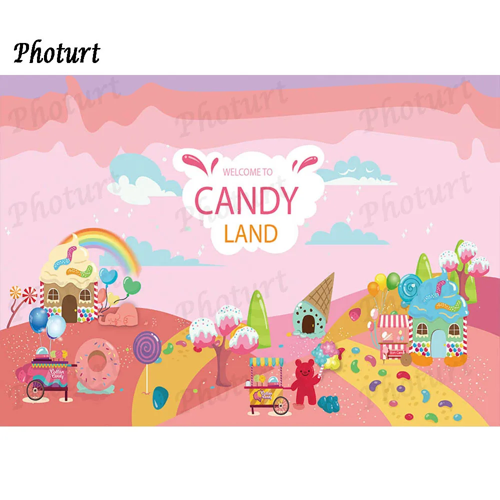 PHOTURT Candyland фон Baby Shower День рождения фон для фотосъемки с изображением розового цвета конфеты в мире Виниловый фон для фотосъемки с Украшения Опора
