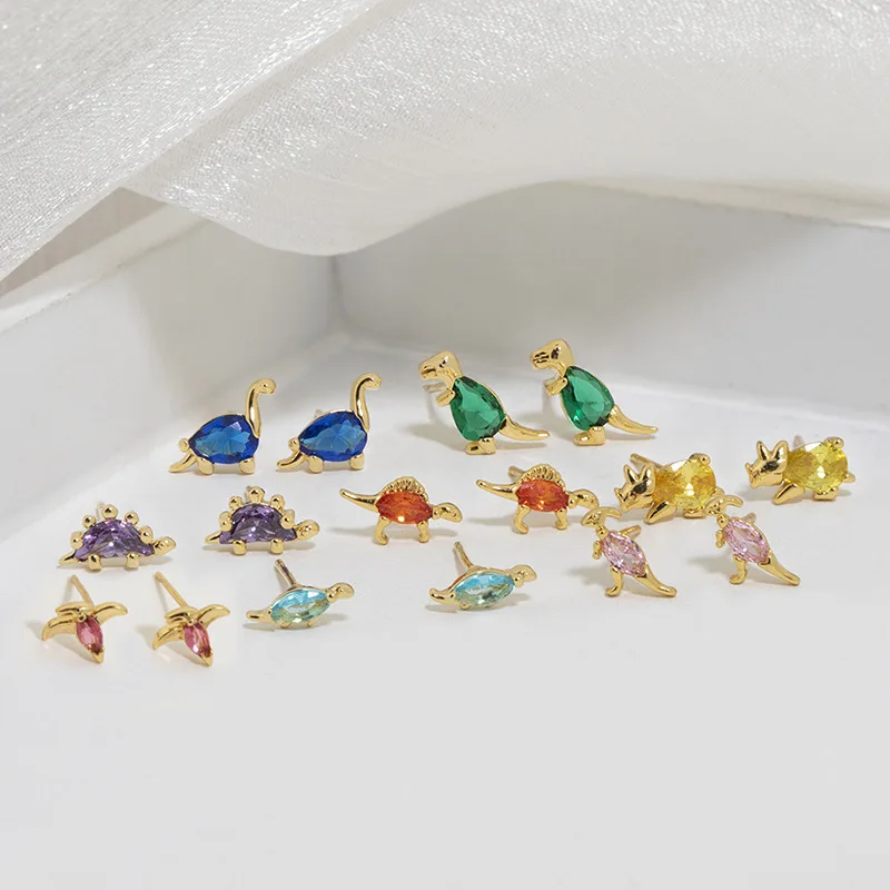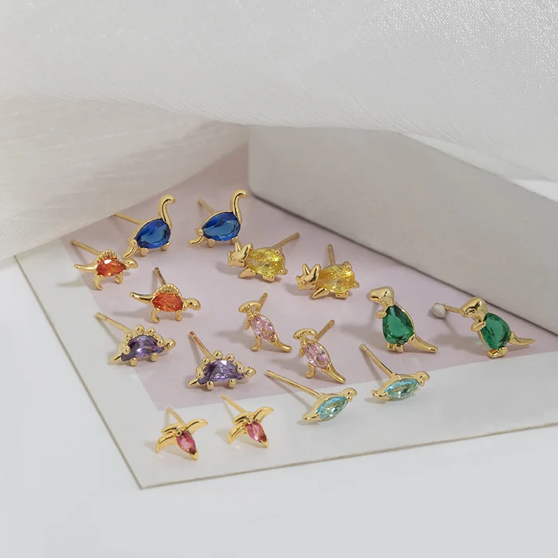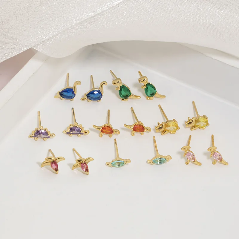 Летние Новые Роскошные серьги-гвоздики с фианитом, динозавр, позолоченные милые маленькие серьги с животными для женщин и девушек, модные украшения