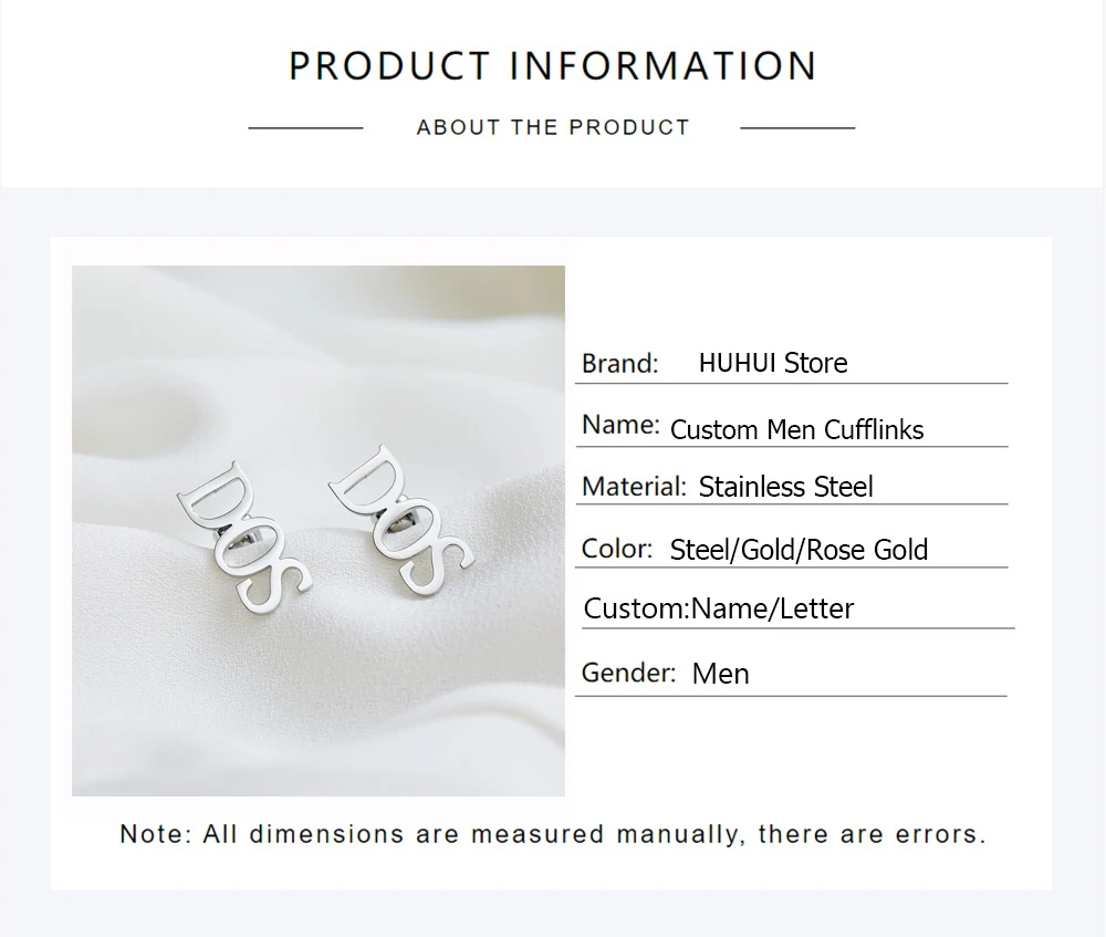 HUHUI Пользовательское Имя запонки на заказ Нержавеющаясталь письмо манжета логотип ссылки Для мужчин Муж папа ювелирные изделия жениха женихов Для мужчин подарки