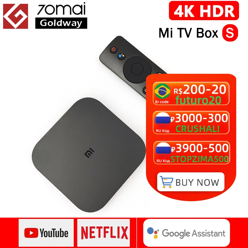 -500 код: STOPZIMA500 Xiaomi Mi TV Box S Android TV Box 8,1 глобальная версия 4K HDR Quad-core Bluetooth 4,2 Смарт ТВ коробка 2 ГБ 8 ГБ DDR3 Wi-Fi, интеллектуальное управление