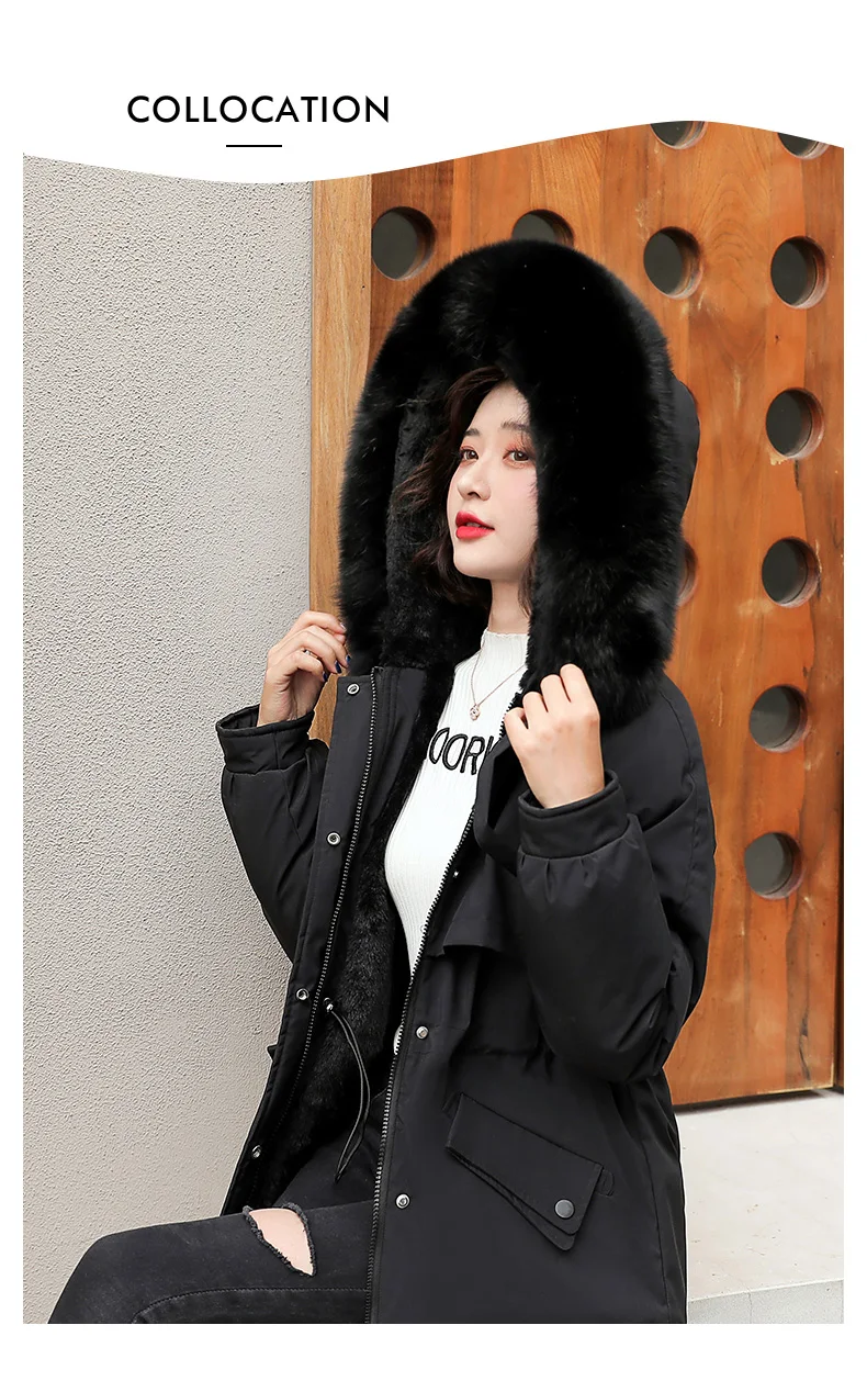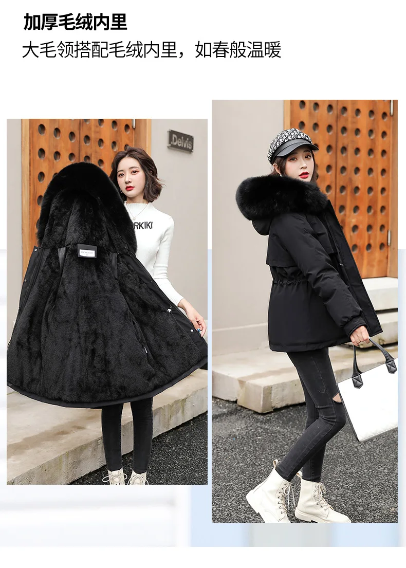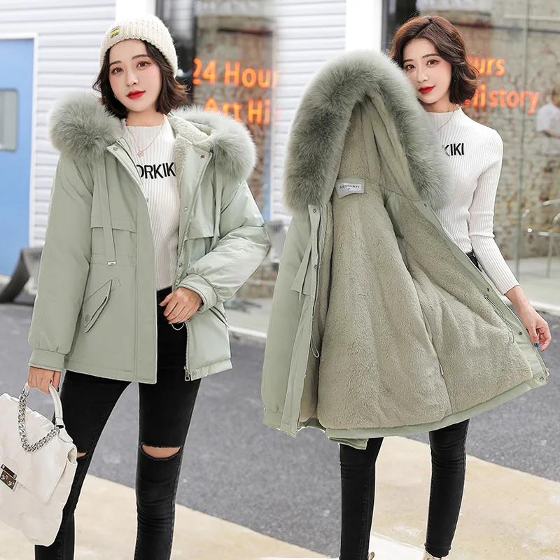 Новинка 2021, женская утепленная парка с флисовой подкладкой и капюшоном, женская верхняя одежда с большим меховым воротником, осенне-зимняя куртка, Женское пальто, парки