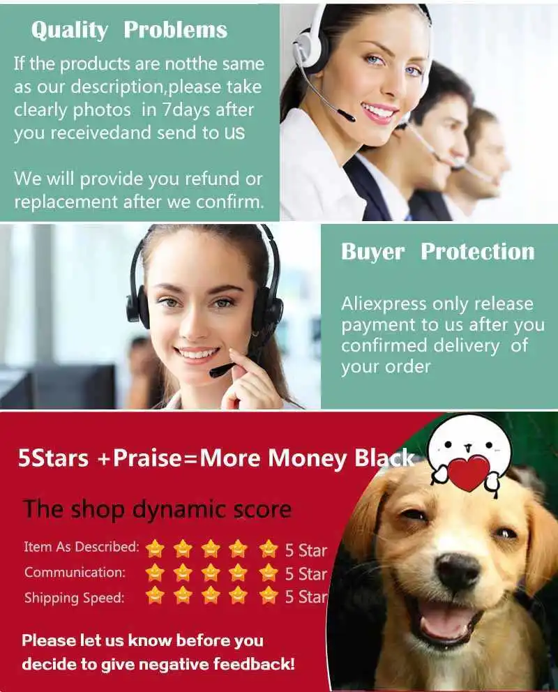 3. Пожалуйста, свяжитесь с нами, прежде чем открытьСпор или оставить нам комментарий с низкой звездой. Так как свяжитесь с нами напрямую, это лучший способ найти решение, чтобы Вы остались довольны. Мы делаем все возможное, чтобы сделать каждого клиента счастливым.