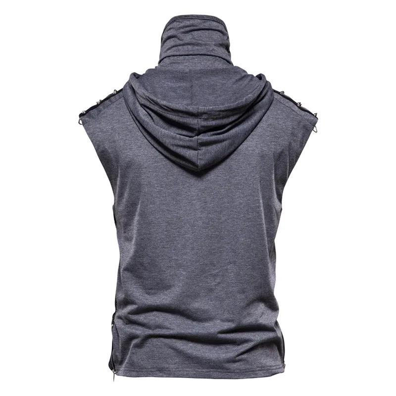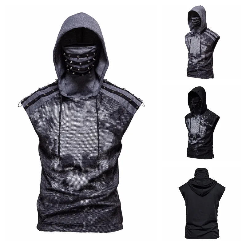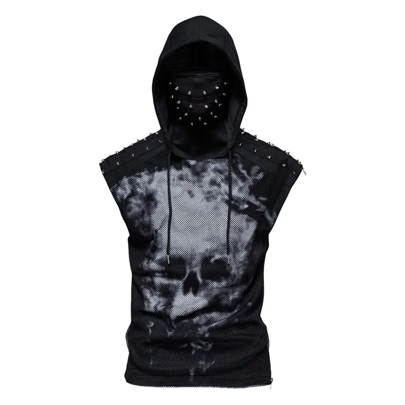 2021 Новый стрейч фитнес мужские с изображением черепа, Киберпанк ниндзя костюм с капюшоном без рукавов Футболка Маска на лицо для верховой езды M-3XL