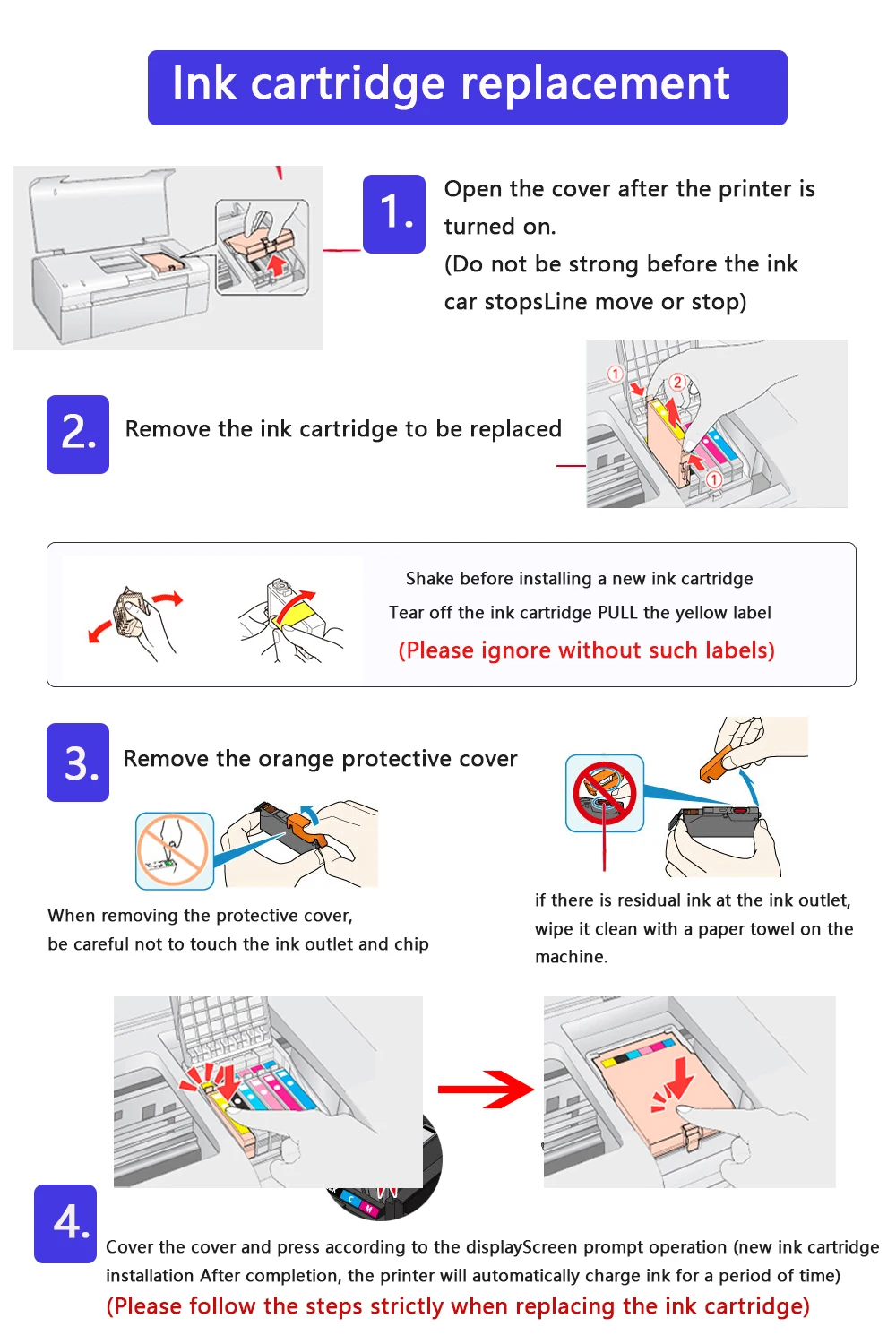 Перед размещением заказа убедитесь, что ваша оригинальная модель картриджа составляет 603XL.Подходит для струйных принтеров Epson, как показано ниже:Для Epson Expression Home XP-2100Для Epson Expression Home XP-2105Для Epson Expression Home XP-3100Для Epson Expression Home XP-3105Для Epson Expression Home XP-4100Для Epson Expression Home XP-4105Для Epson WorkForce WF-2810Для Epson WorkForce WF-2830Для Epson WorkForce WF-2835Для Epson WorkForce WF-2850