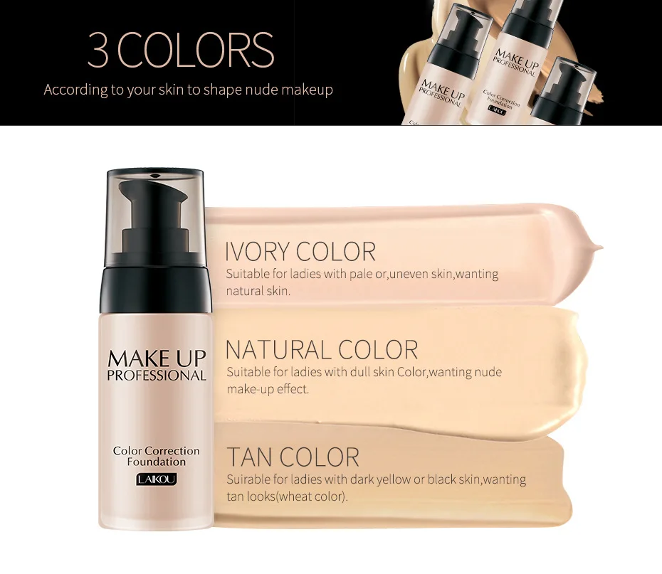 Laikou 40 мл макияж, основа для лица кисточка для жидкого тонального крема BB крем увлажняющий консилер масло Управление Водонепроницаемый Make Up профессиональных