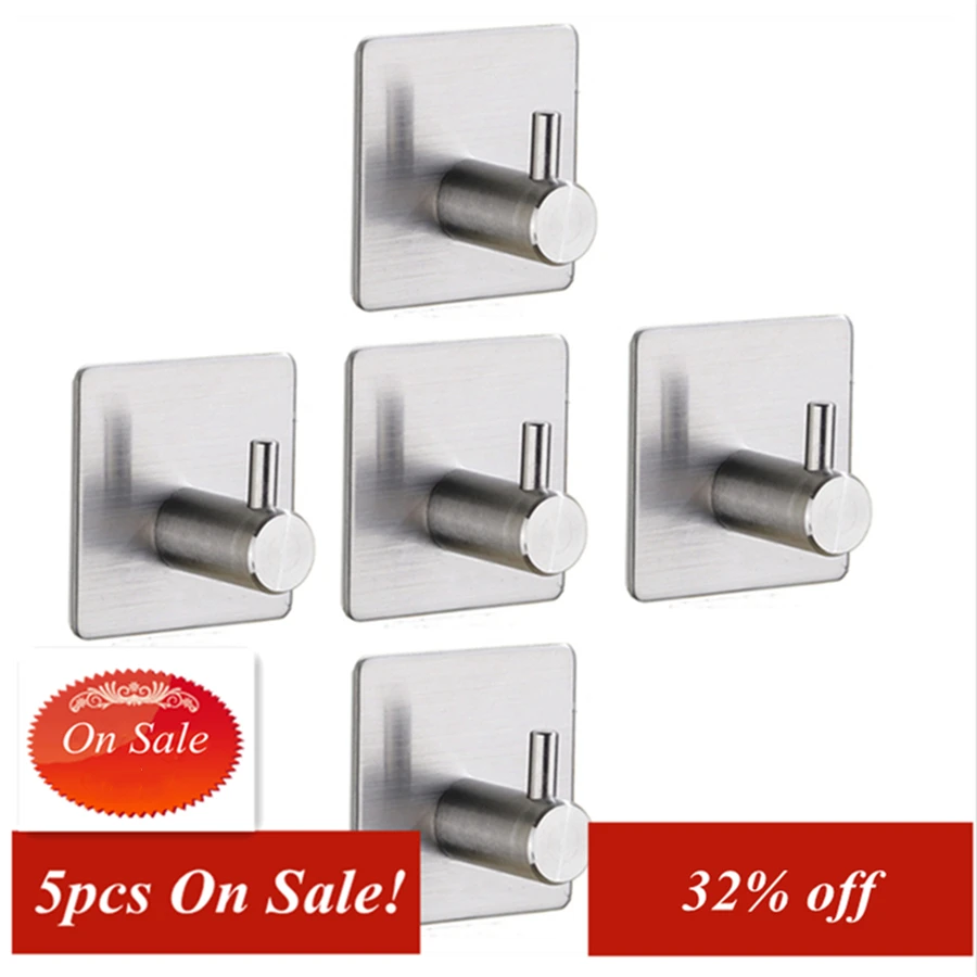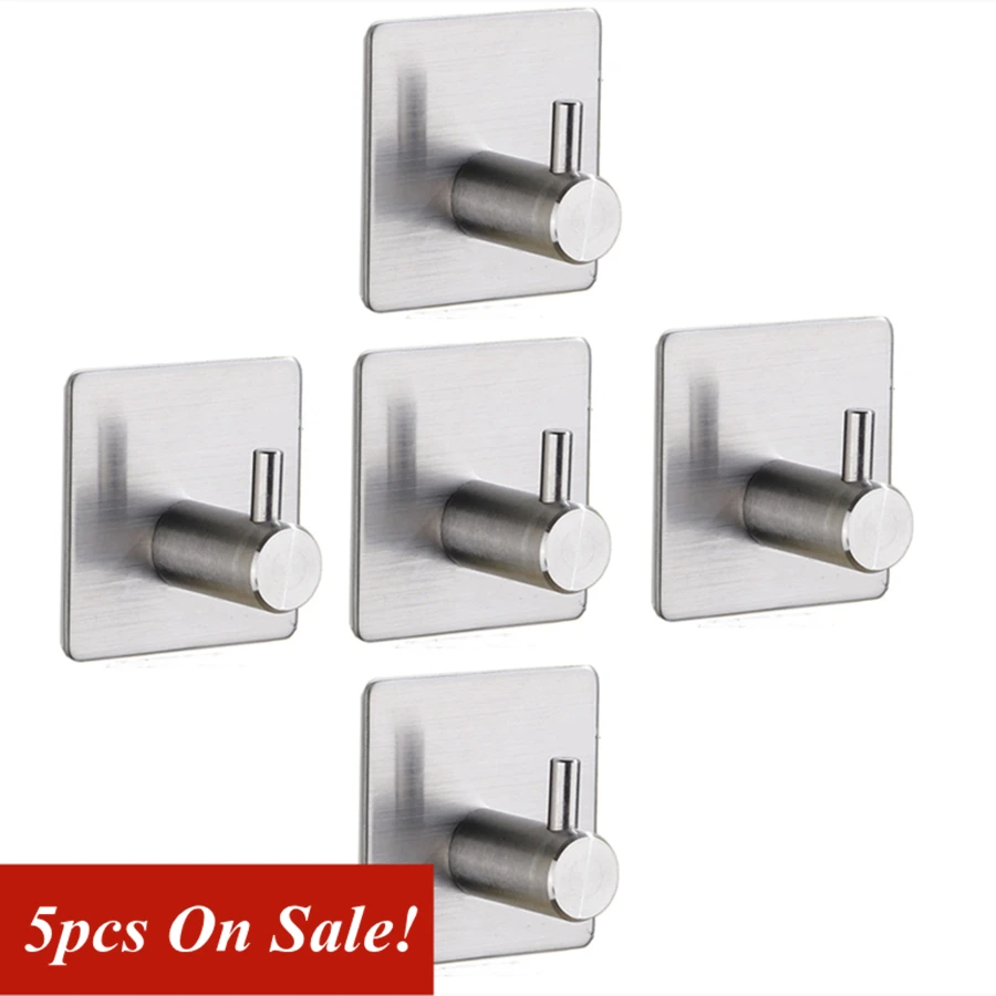 Крючки Настенные самоклеящиеся, из нержавеющей стали крючки для ванной и кухни, вешалка на дверь, стену, крючок для халата и полотенца, 5 шт.