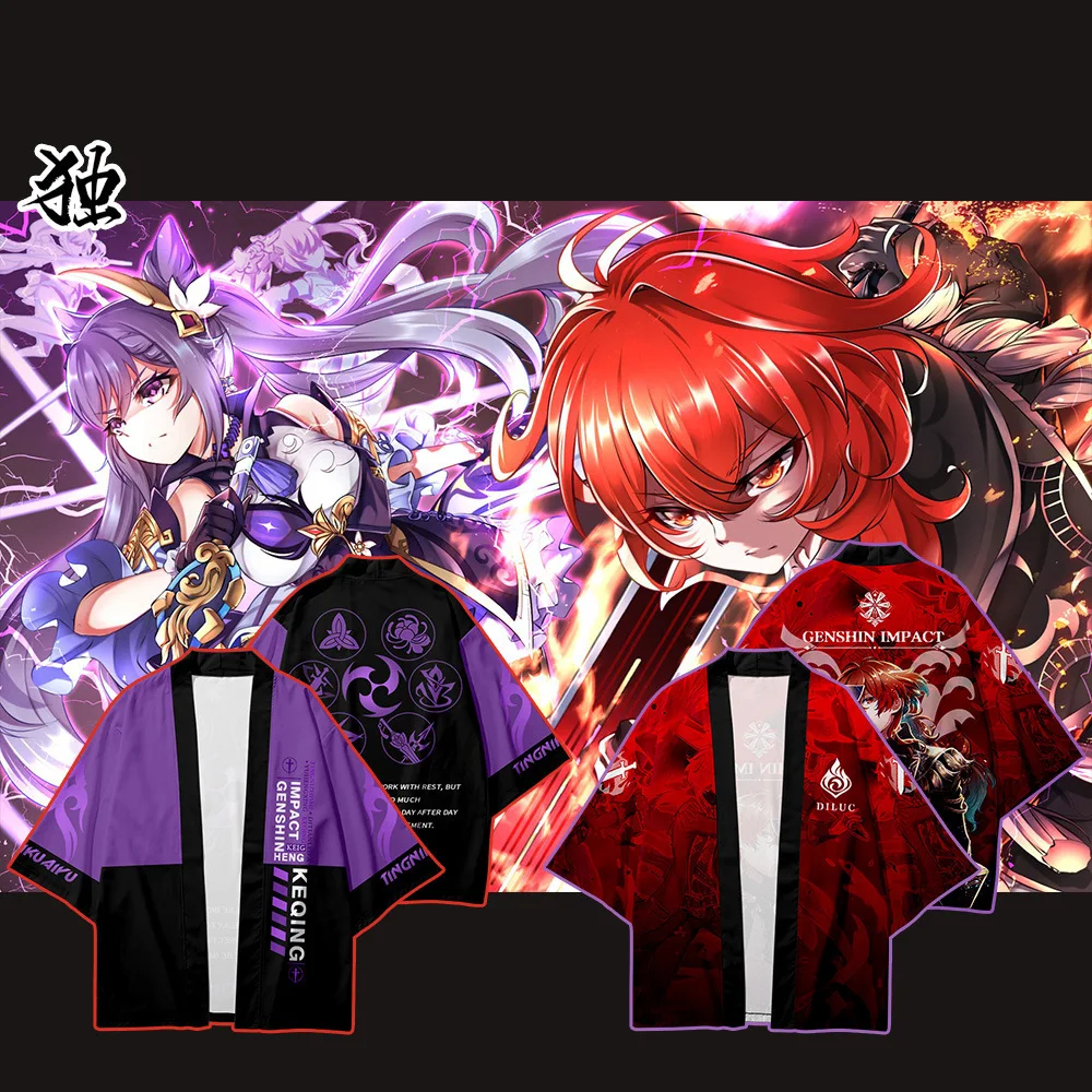 Японское кимоно Genshin Impact Klee Ganyu, хаори юката, модное летнее кимоно с коротким рукавом для женщин и мужчин, рубашки, уличная одежда