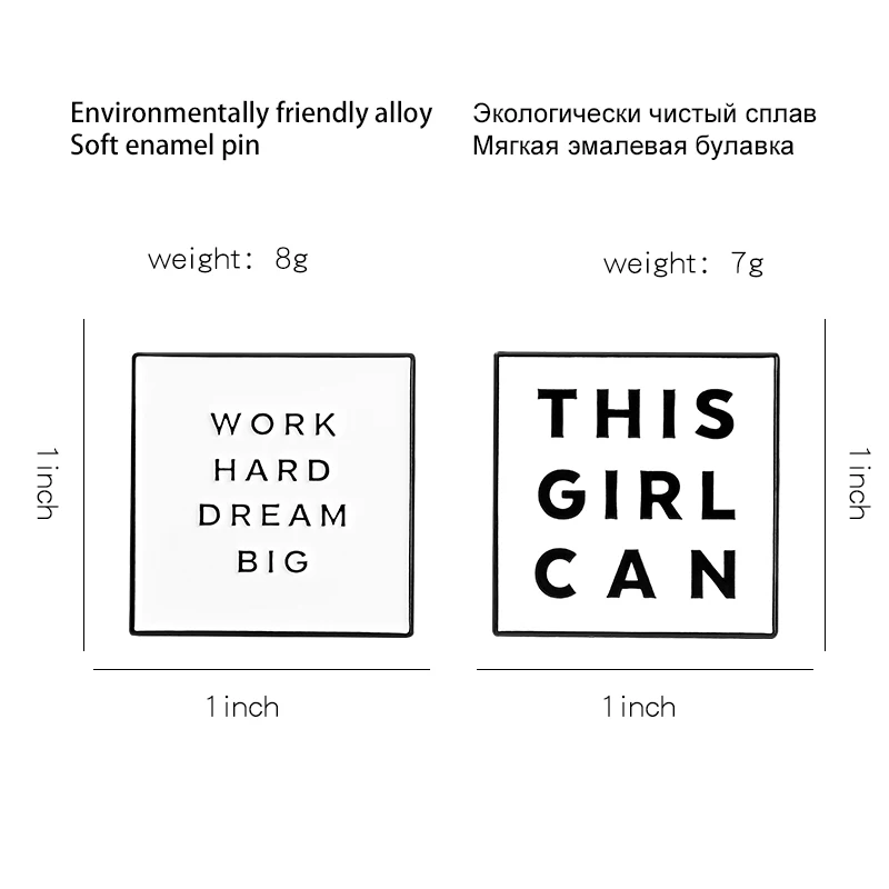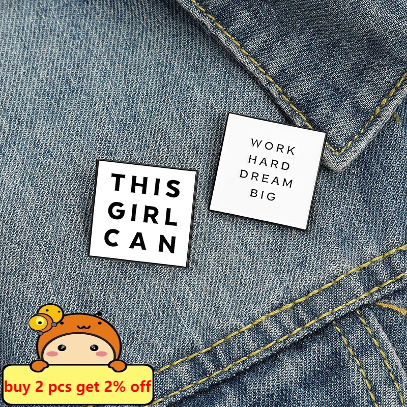 Эмалированные булавки с цитатами вдохновения, квадратные черные и белые буквы, мотивационные высказки, Значки для девочек, мощные броши, феминистские ювелирные изделия, подарок